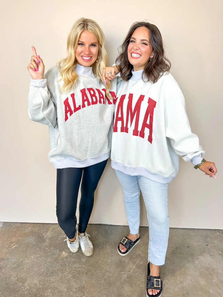 Show your team spirit in style with the Alabama Game Day Mock Neck Reversible Sweatshirt. This versatile sweatshirt offers two looks in one, perfect for switching up your game day outfit. Its cozy, oversized fit keeps you comfortable while cheering from the stands or hanging out with friends.Â