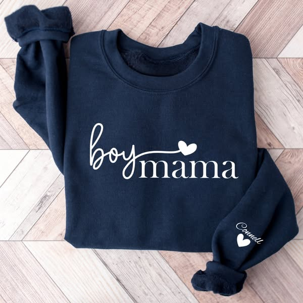 Boy Mama Sweatshirt and Hoodie With Kid Name On Sleeve,Gift for Mom,Birthday Gift for Her