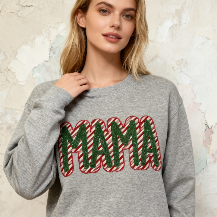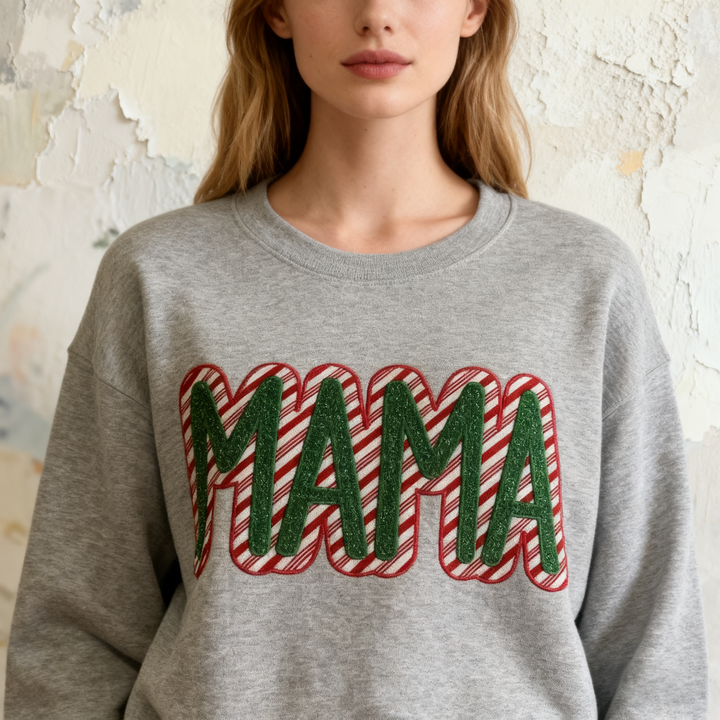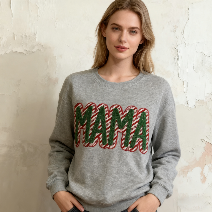 Christmas Mama Embroidered Glitter Sweatshirt Hoodie