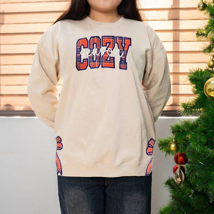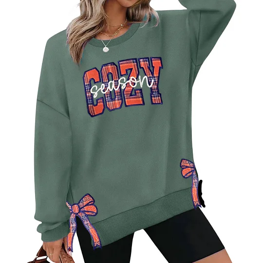 Cozy Season Side Bow Cut-Out Shirt , Plaid Fall Pullover , Cozy Season , Bow Cut-Out Shirt