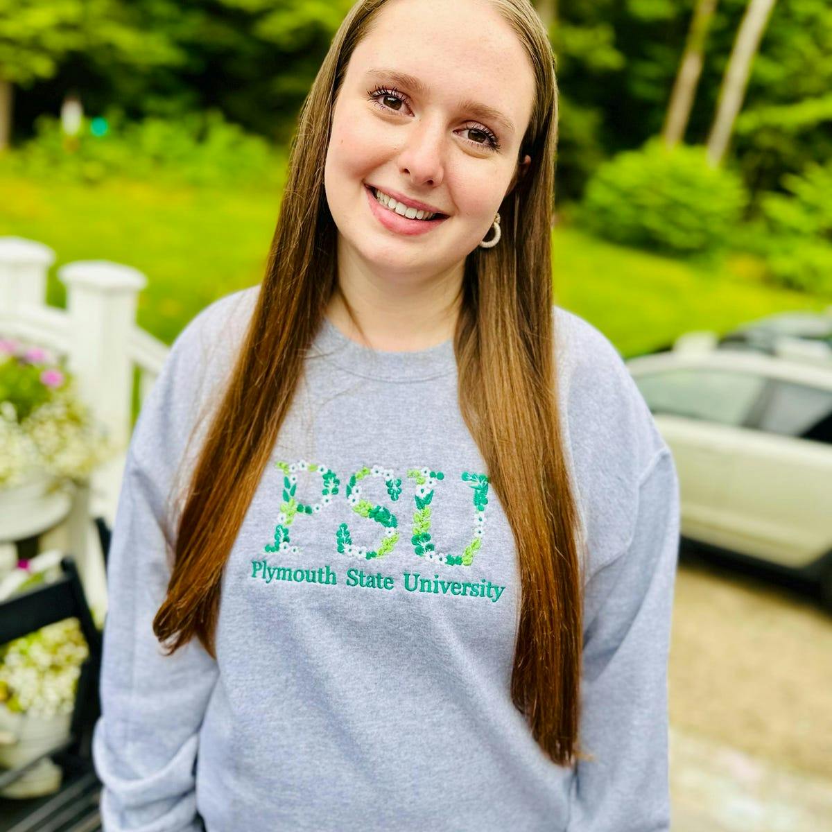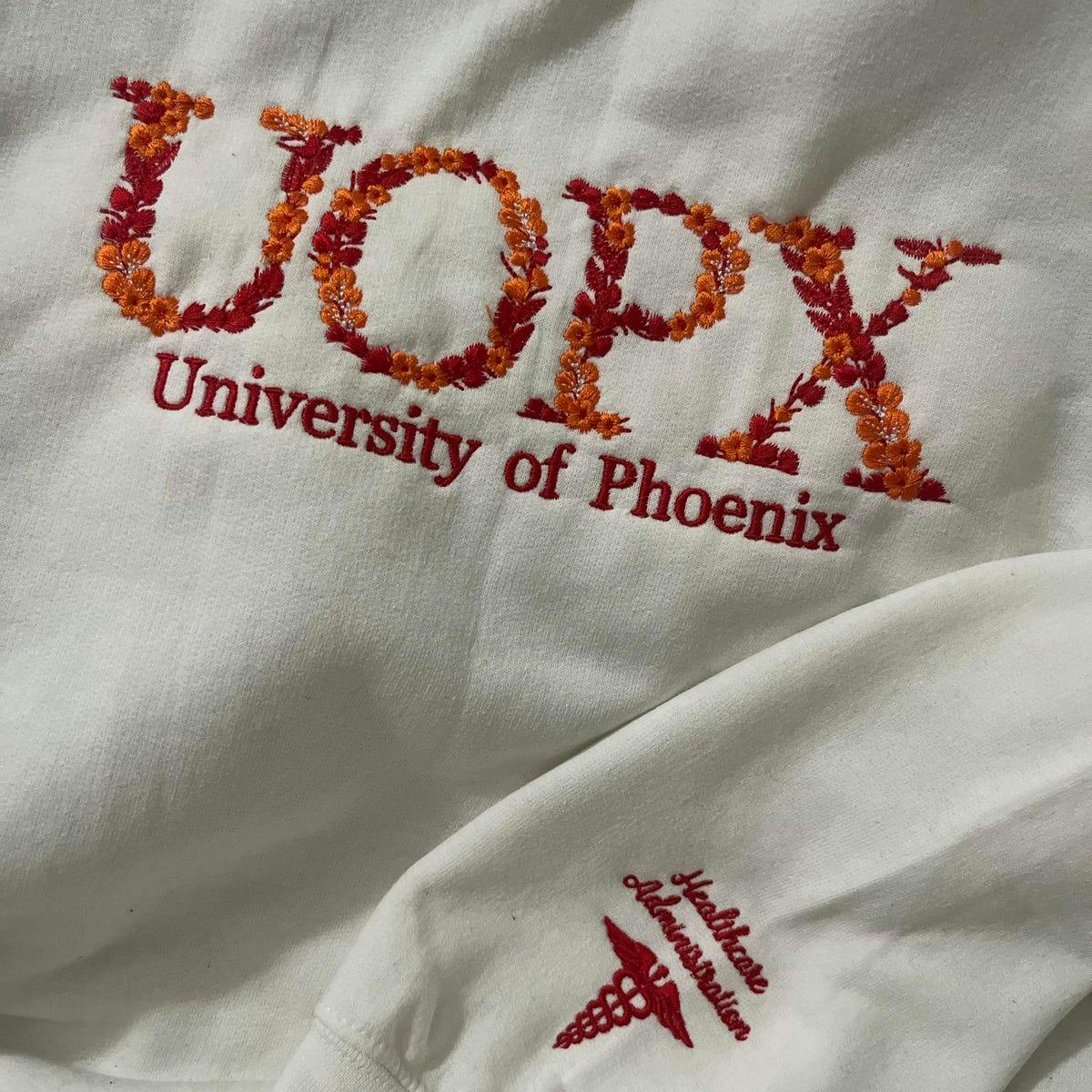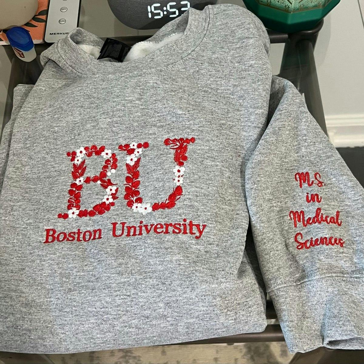 Custom College Embroidered Sweatshirt, Floral Letter Embroidered Hoodie, College University High School Crewneck, Graduation Gift For Friend