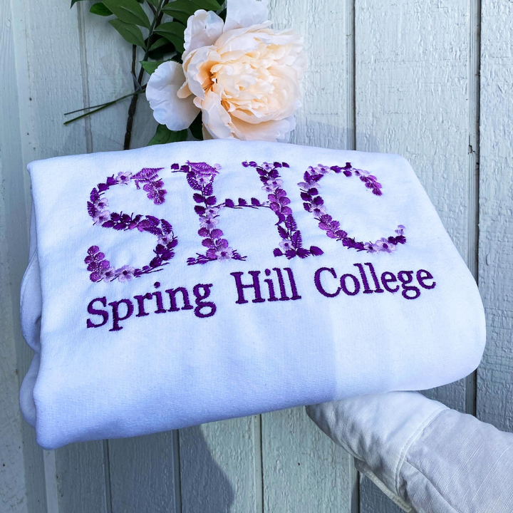 Show off your school pride in style with our Custom College Floral Letter Embroidered Sweatshirt. This cozy and fashionable sweatshirt combines the timeless appeal of floral embroidery with the bold spirit of your college, making it a must-have for students, alumni, and fans alike.