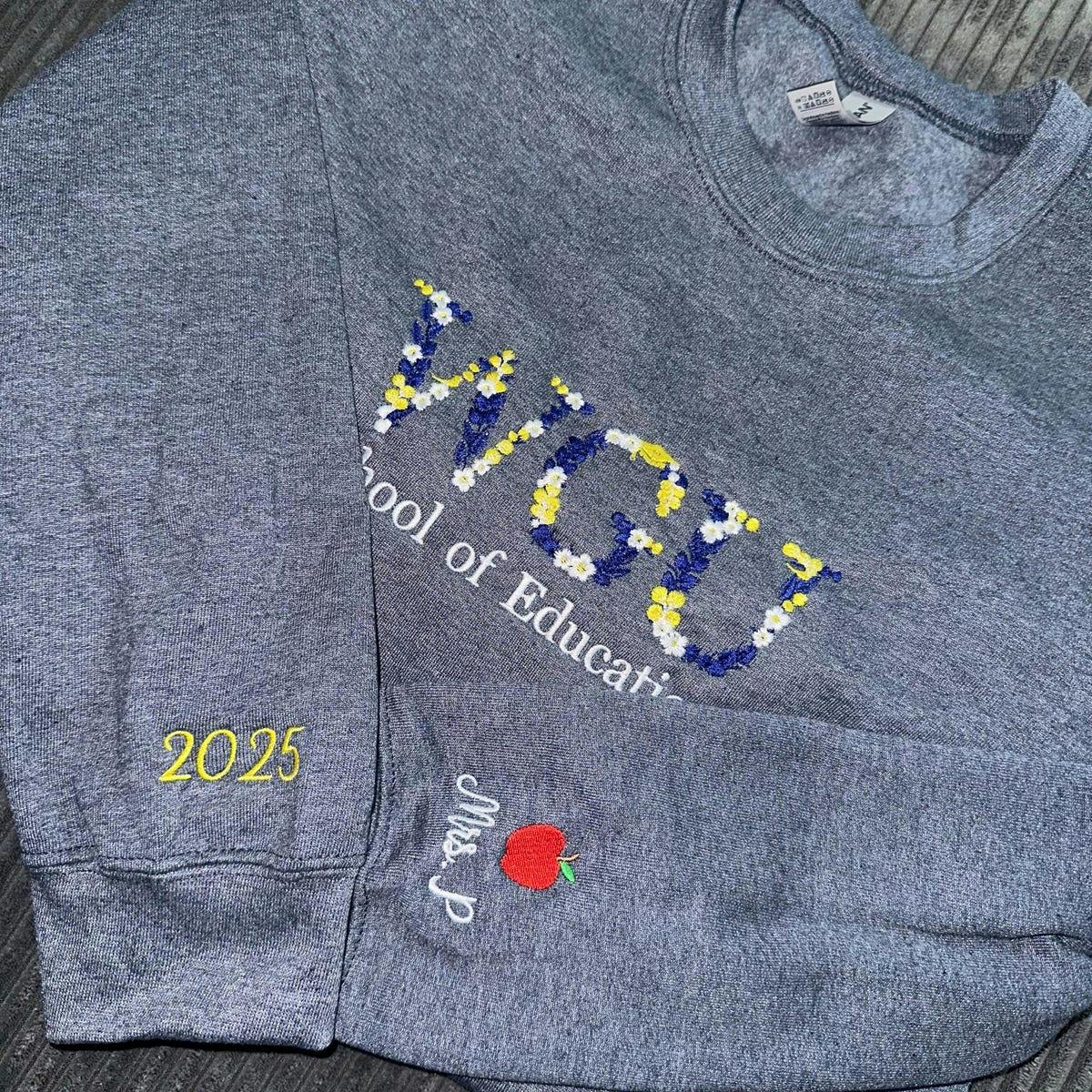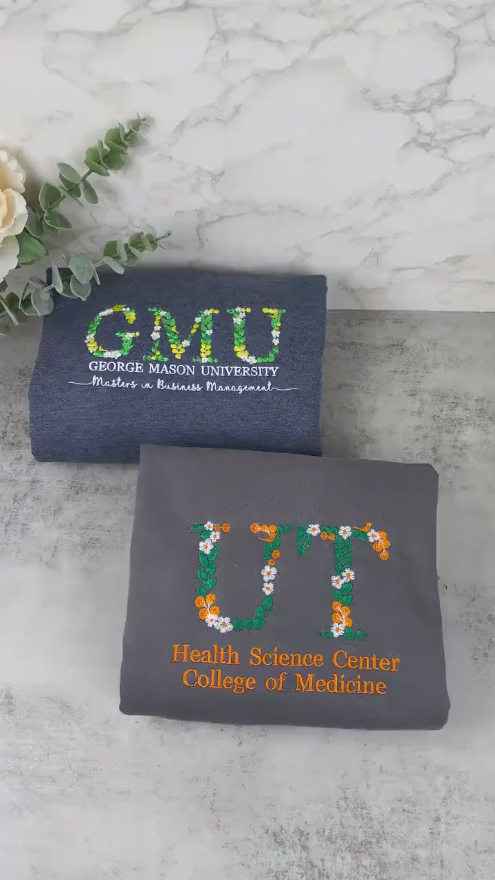 Custom College Floral Embroidered Sweatshirt, Floral Letter T-Shirt, Flower College Shirt, High School Shirt, Graduation Gift, Sorority