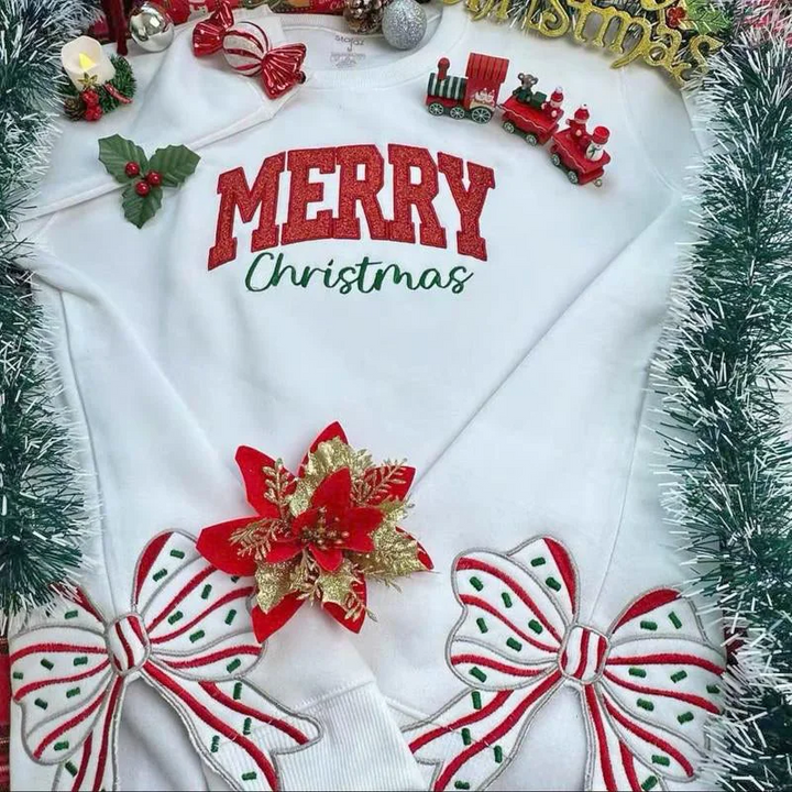 Custom Embroidered Bow Christmas Sweatshirt - Pullover Bow Side Bow Applique Hoodie