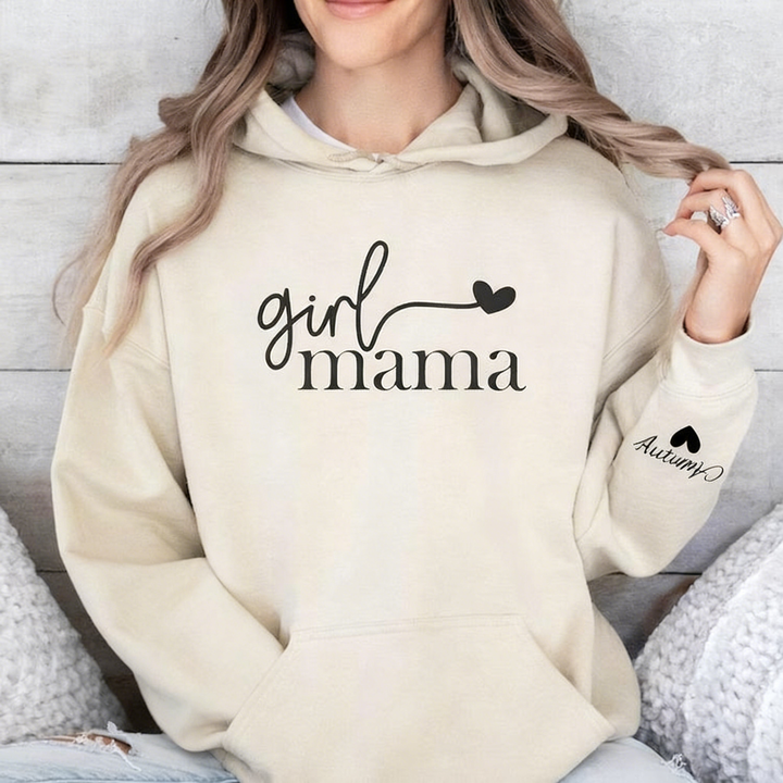 Girl Mama Sweatshirt and Hoodie With Kid Name On Sleeve,Gift for New Mom,Birthday Gift for Her