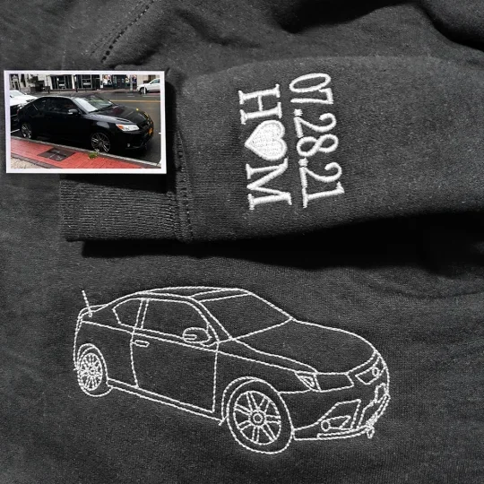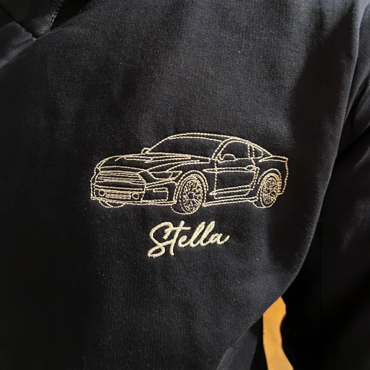 Every stitch reflects our passion for cars, transforming your concept into a distinctive Car Embroidered Sweatshirt.