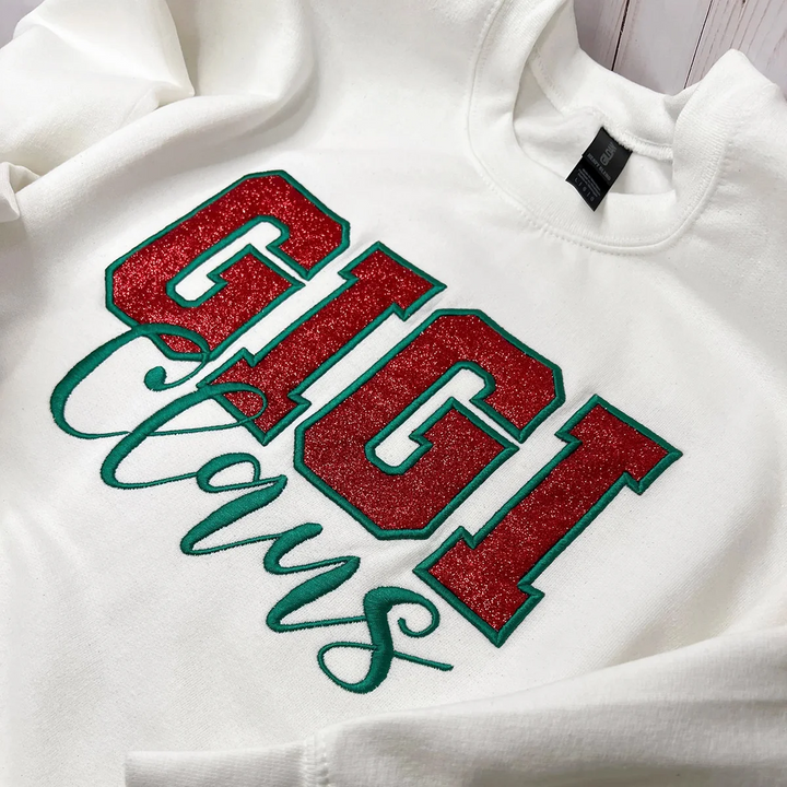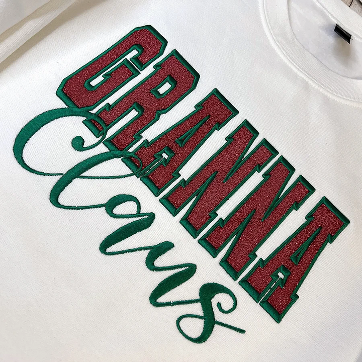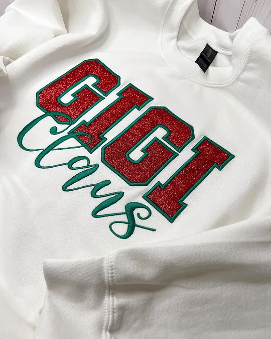 This Christmas, celebrate the heart of the family—the magnificent grandma, nana, or mama who makes the season sparkle! Introducing the Custom Embroidered Glitter Appliqué Gigi Mimi Mama Claus Sweatshirt, a breathtaking blend of luxury craftsmanship and heartfelt personalization. With exquisite appliqué detailing, dazzling glitter accents, and your loved ones' names gracefully embroidered on the sleeve, this isn't just a sweater—it's a wearable heirloom, crafted to honor her love and legacy.
