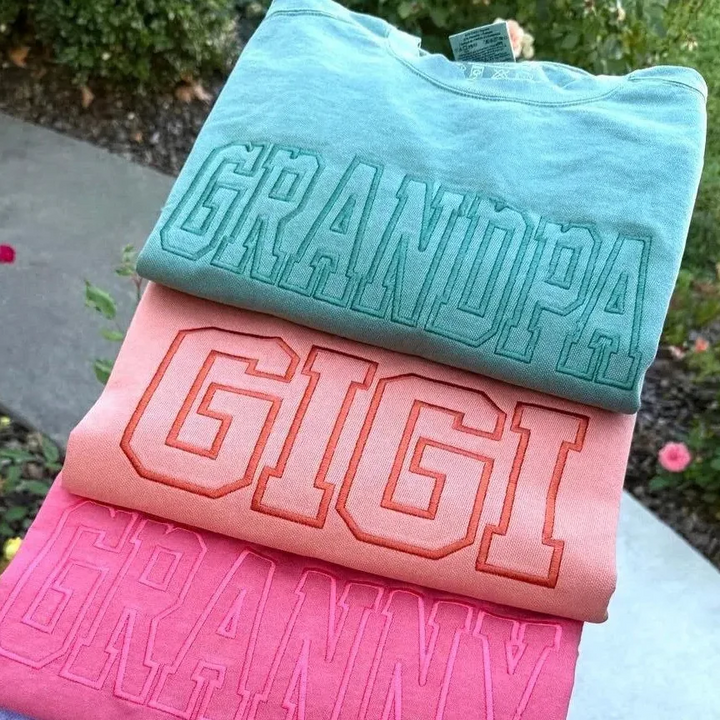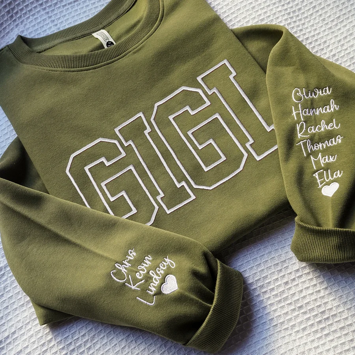 Custom Embroidered Grandma Shirt, Gigi Shirt, Nana Shirt with Kids Names on Sleeves