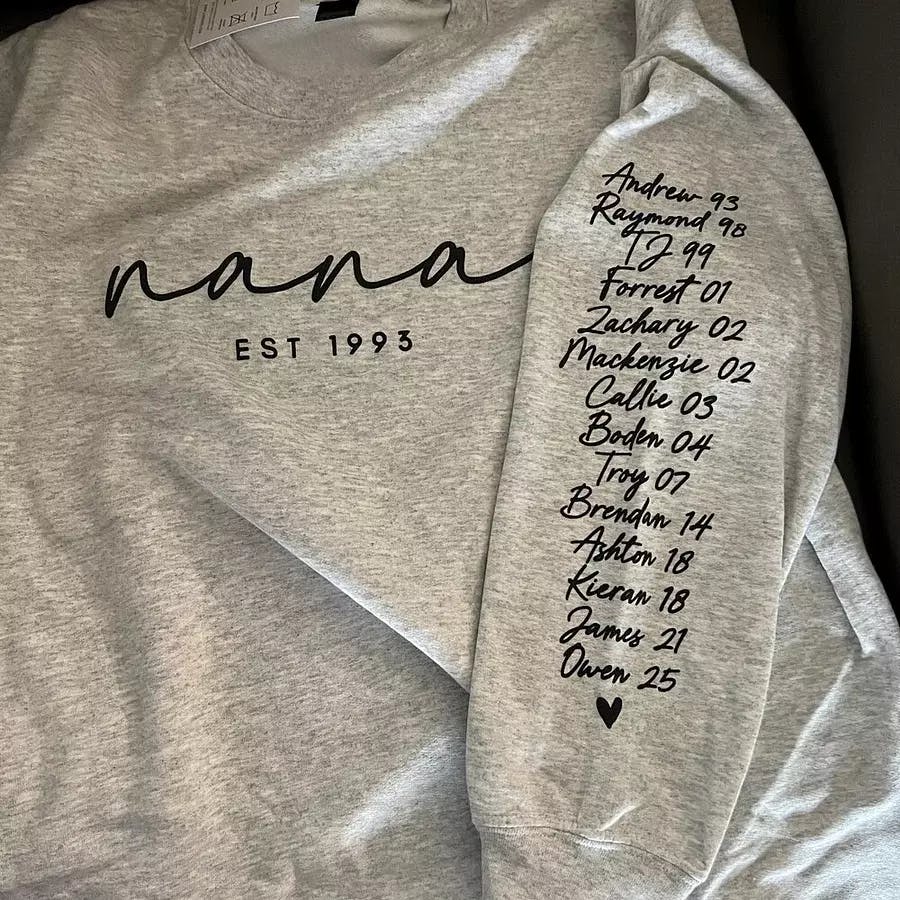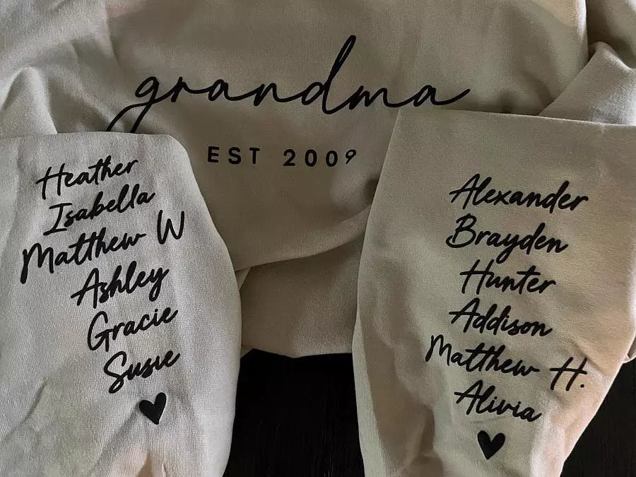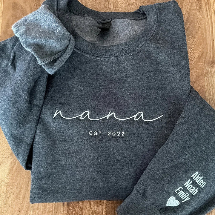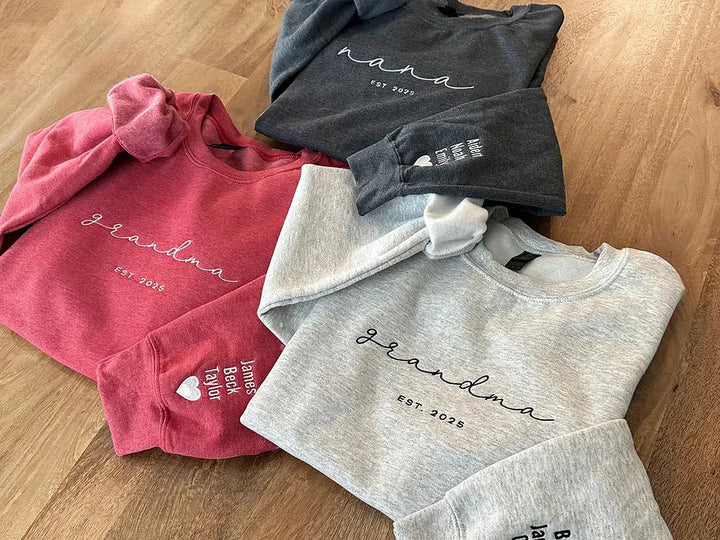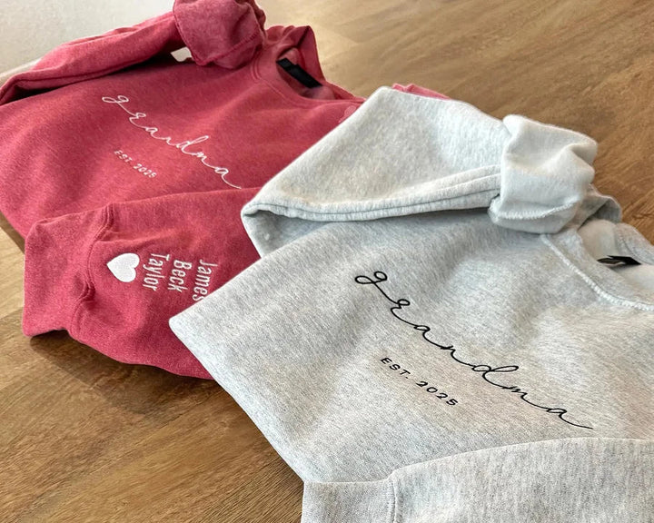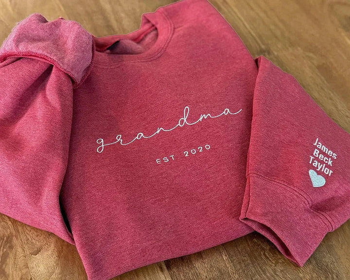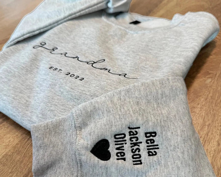 Custom Embroidered Grandma Sweatshirt with Grandkids Names on Sleeves