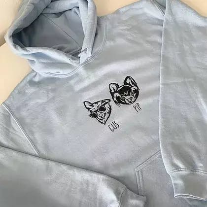 Our personalized portrait hoodies and sweatshirts are ideal! Simply send us a photo of you and your loved one, and we'll turn it into a custom portrait that will be embroidered on a high-quality hoodie or sweatshirt.