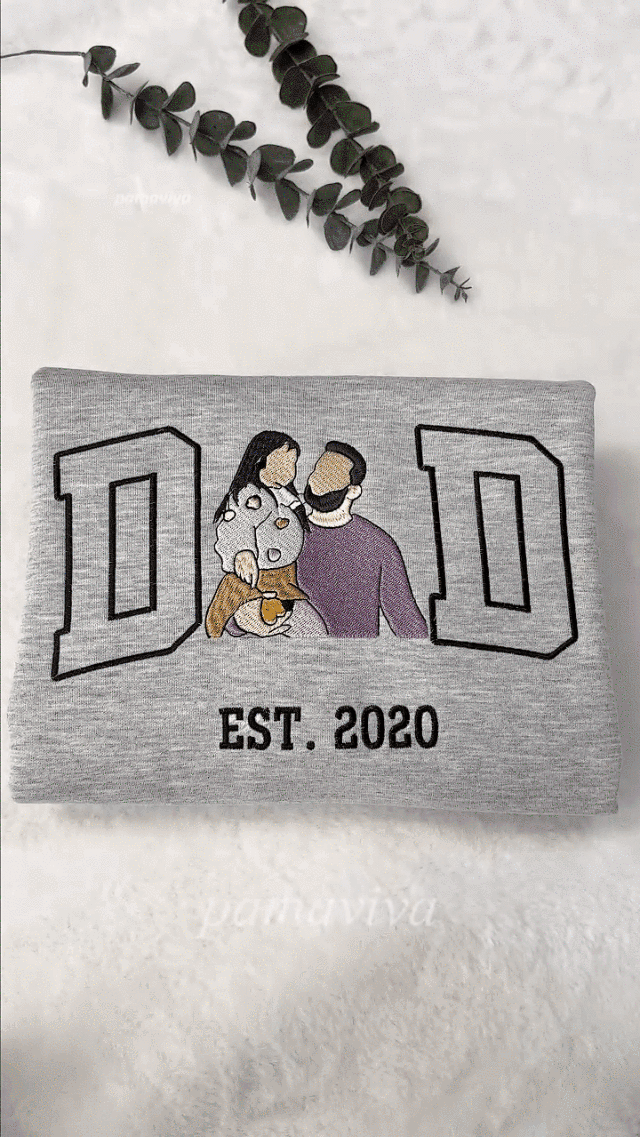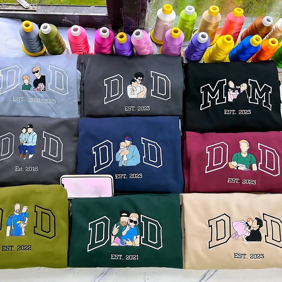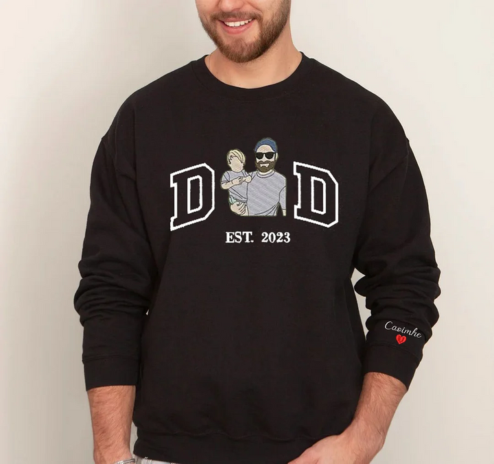 Custom Portrait from Photo Sweatshirt Embroidered Dad,Papa Sweatshirt
