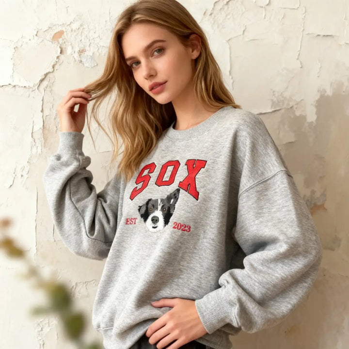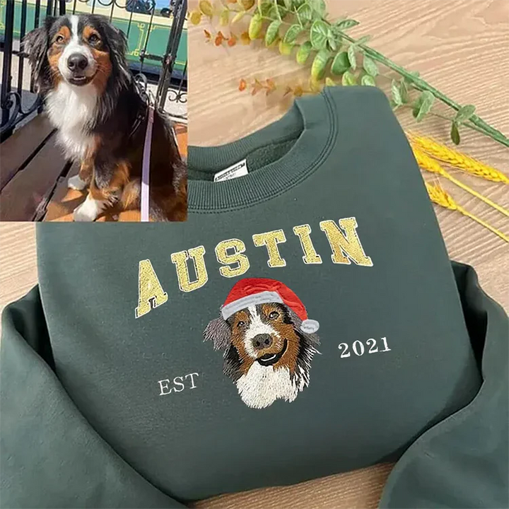 Personalized Embroidered Pet Face and Name Est Sweatshirt Keepsake Gift for Pet Lovers