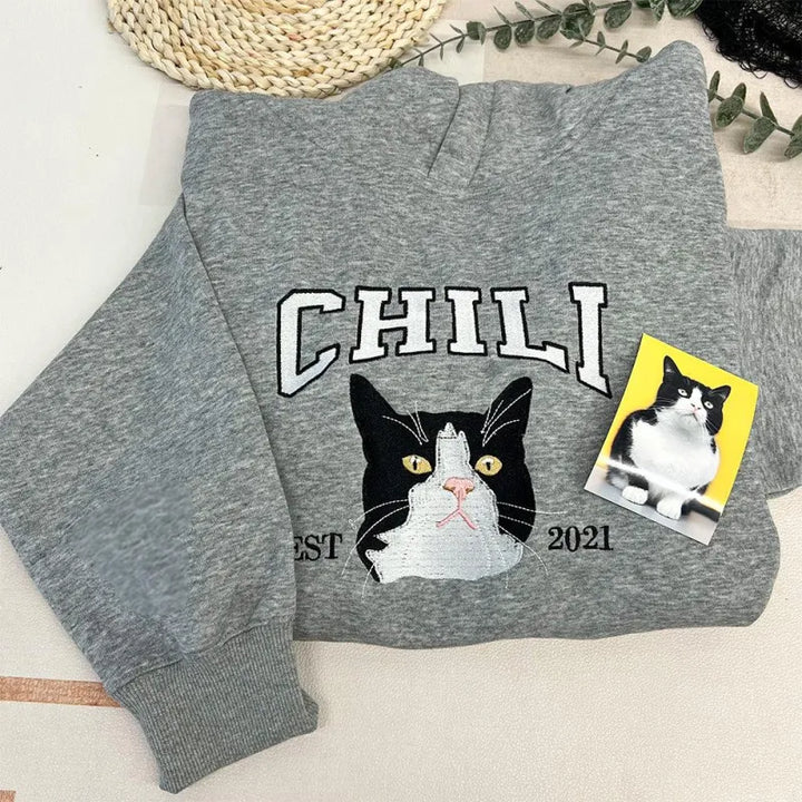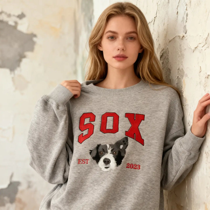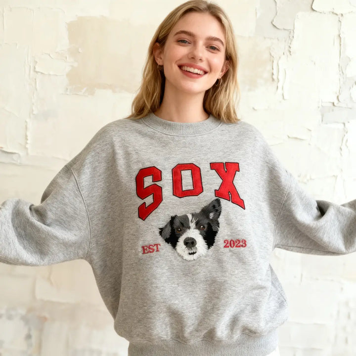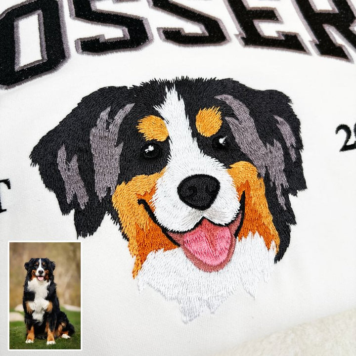 Immortalize your furry friend! Custom embroidered pet portrait EST sweatshirt for pet lover.