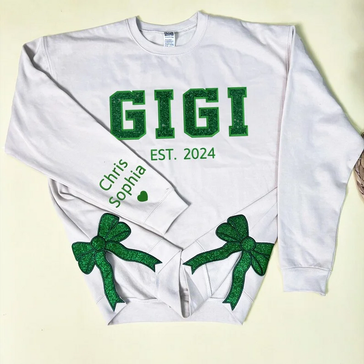 Custom Embroidery Glitter Side Bow Mama Sweatshirt