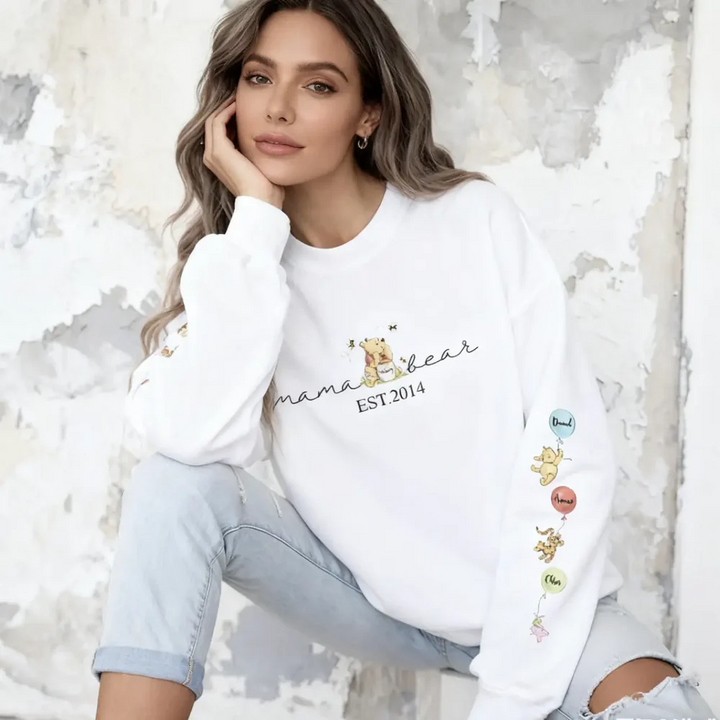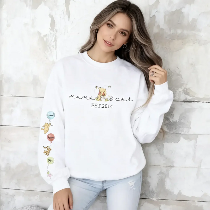 Custom Mama Bear Sweatshirt, Mama Est with Kids Names on Sleeve Sweatshirt