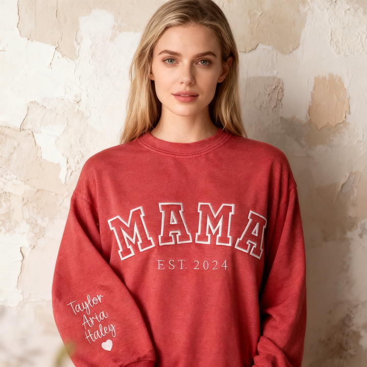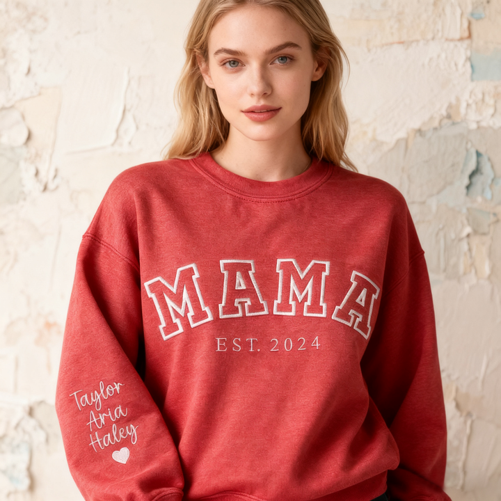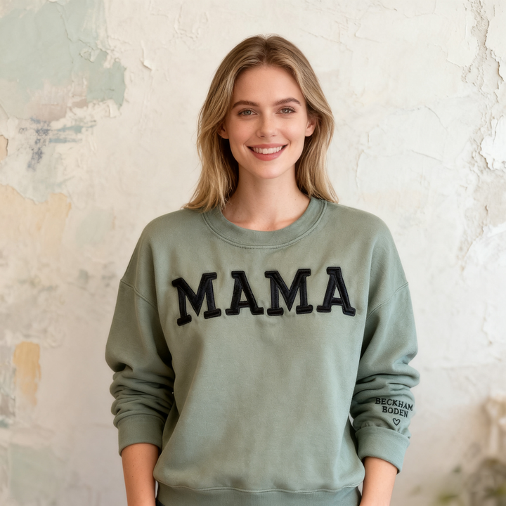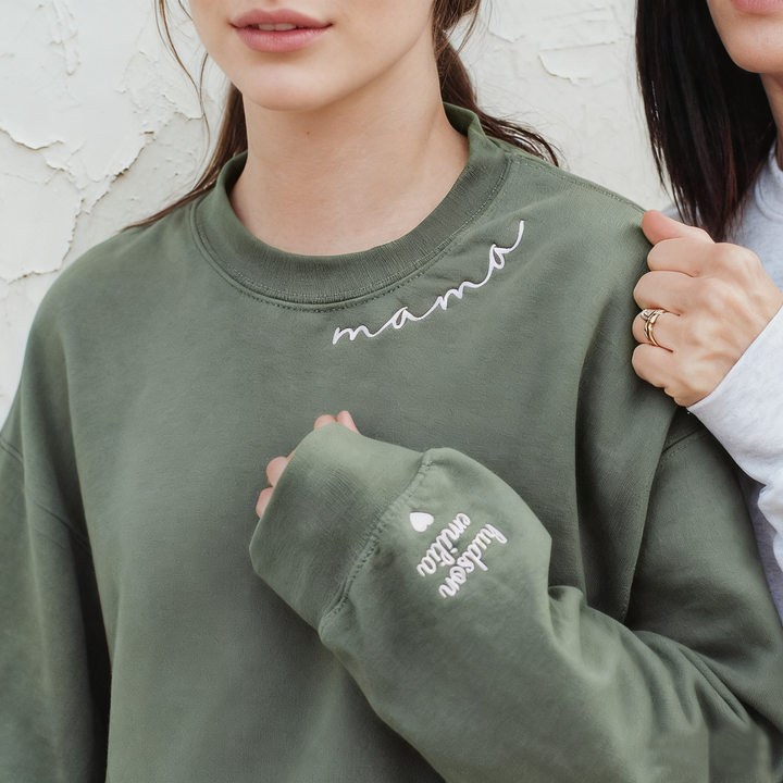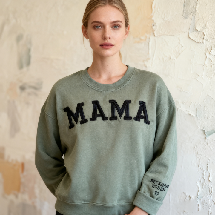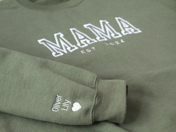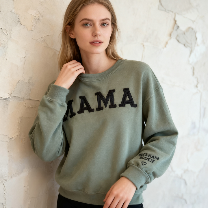 Custom Mama Embroidered Sweatshirt With Kids Names Sleeve