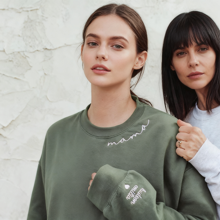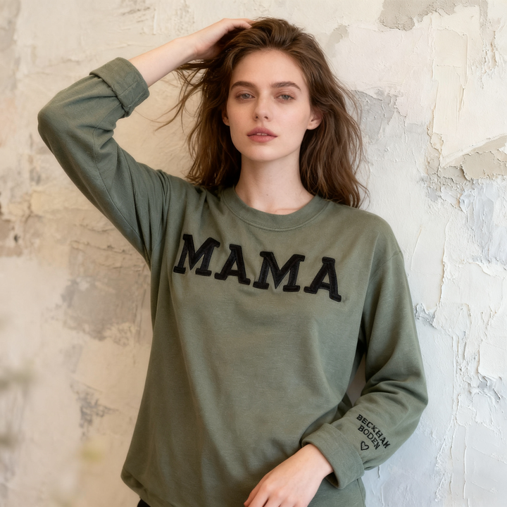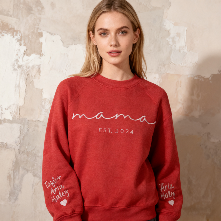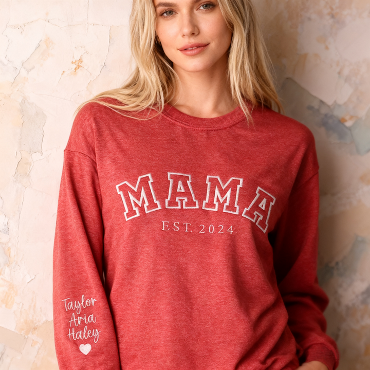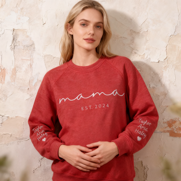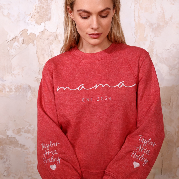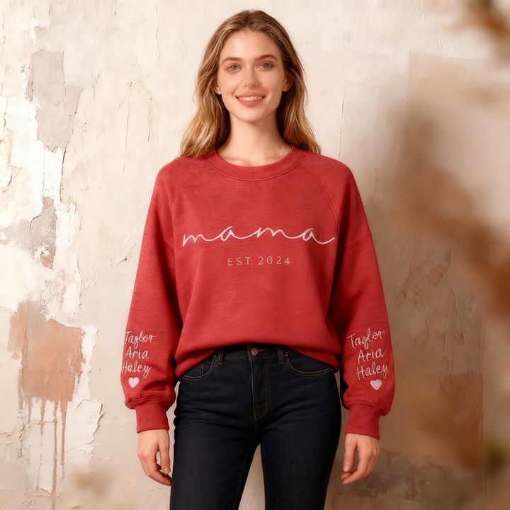 Custom Mama Embroidered Sweatshirt With Kids Names Sleeve