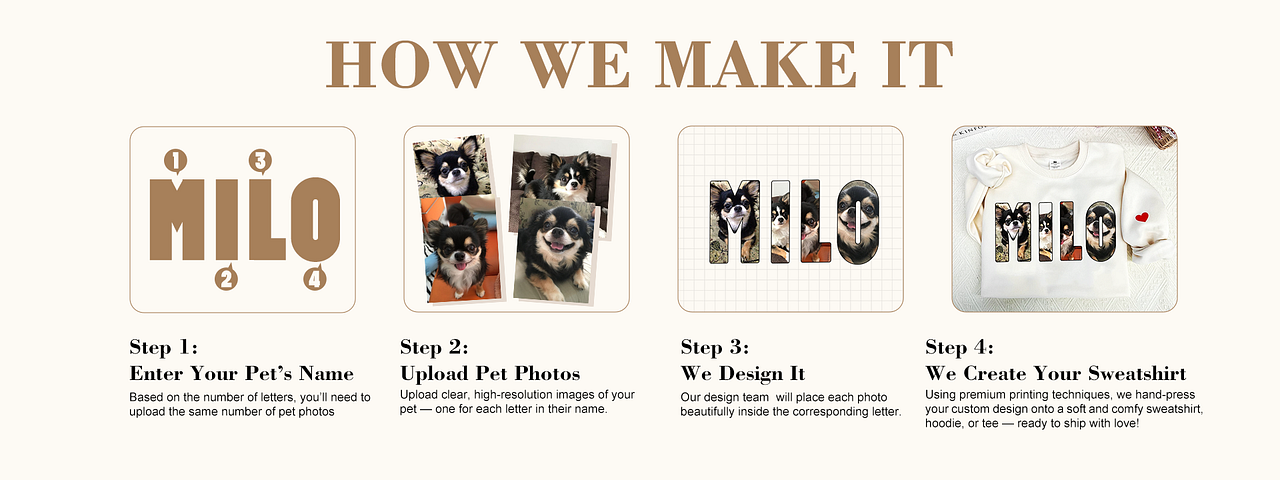 🐾 How It Works – Your Custom Pet Name Sweatshirt in 4 Easy Steps