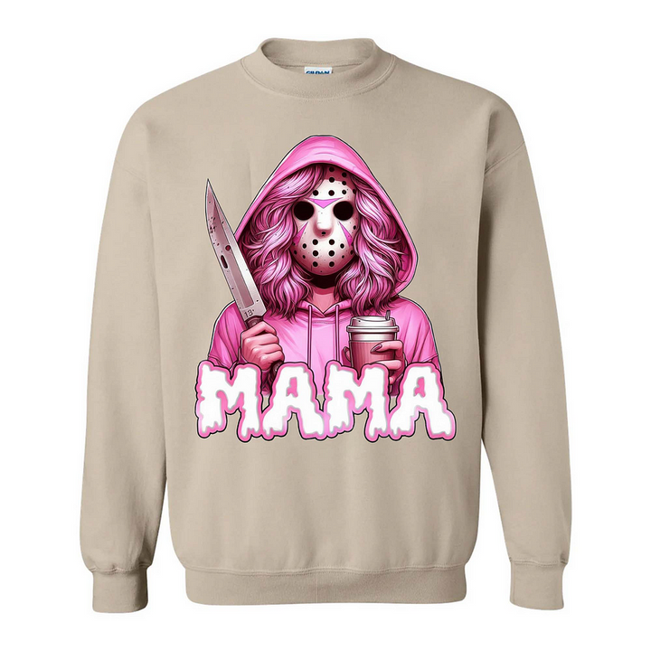 - Horror-Themed "MAMA" Central Design: Boasts a bold, spooky "MAMA" graphic paired with classic horror elements—such as ghostly silhouettes, sinister skull accents, or iconic horror-inspired details (as visible in the product image)—that celebrate both maternal pride and a love for all things creepy.