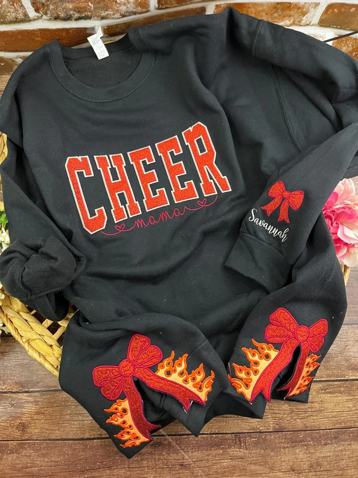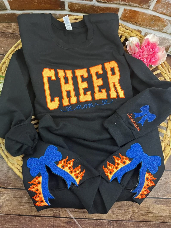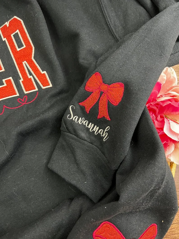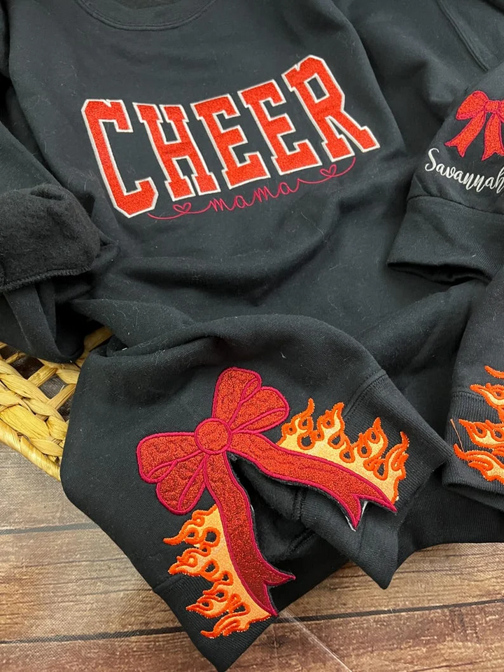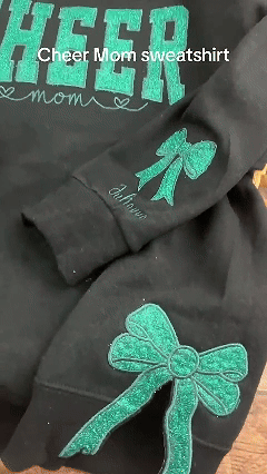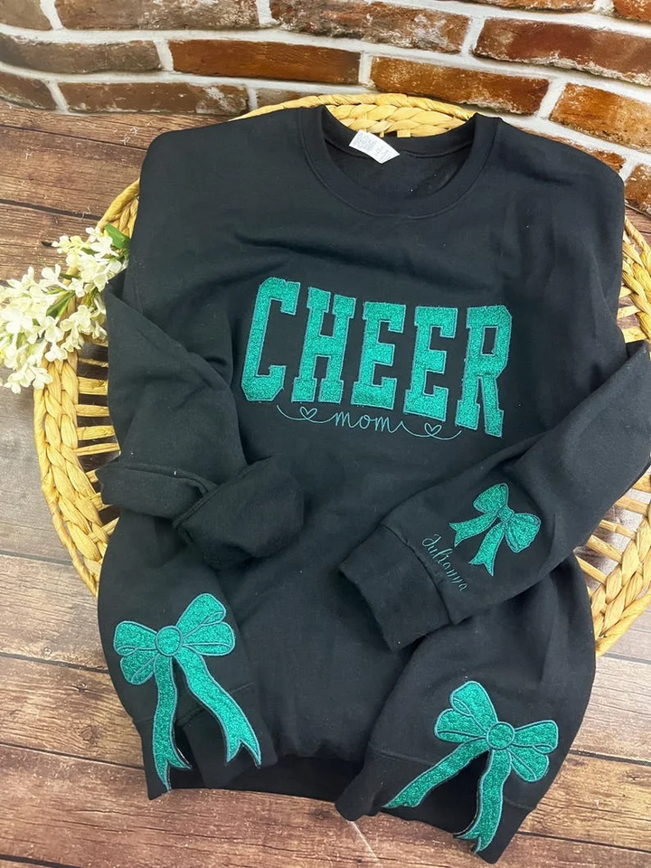 Customize Cheer Mom Glitter Sweatshirt with Side Bow & Sleeve Embroidery