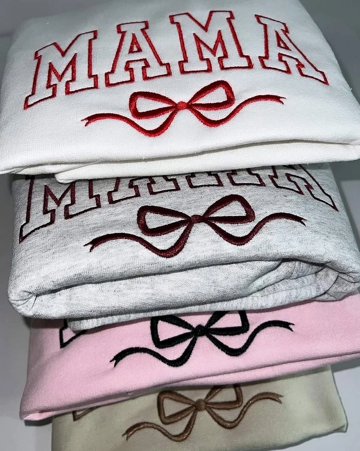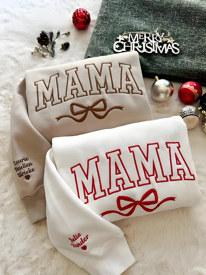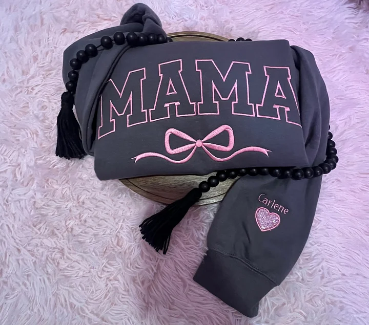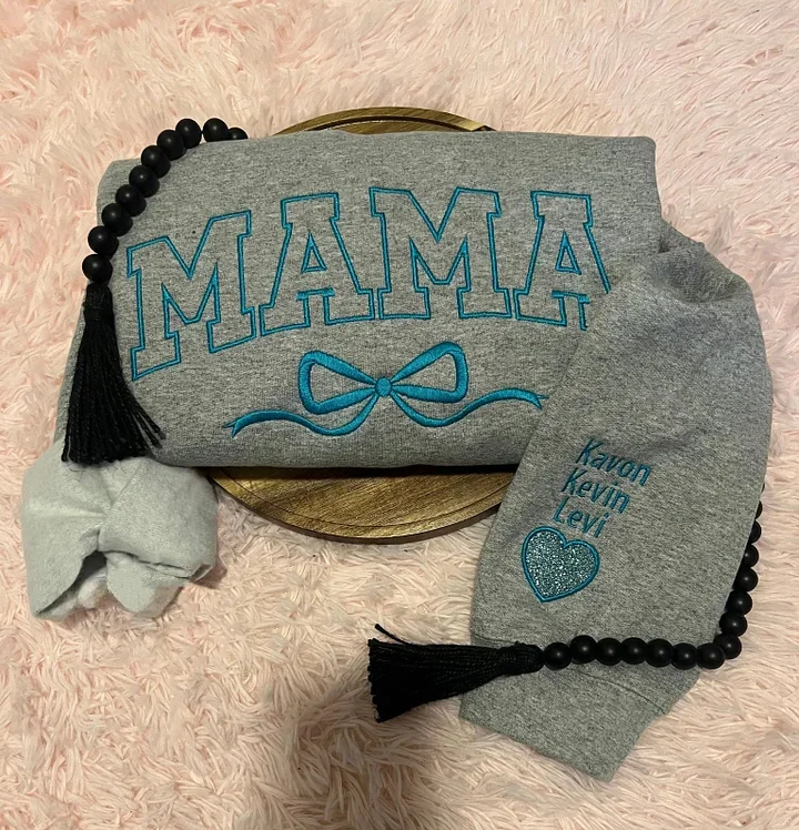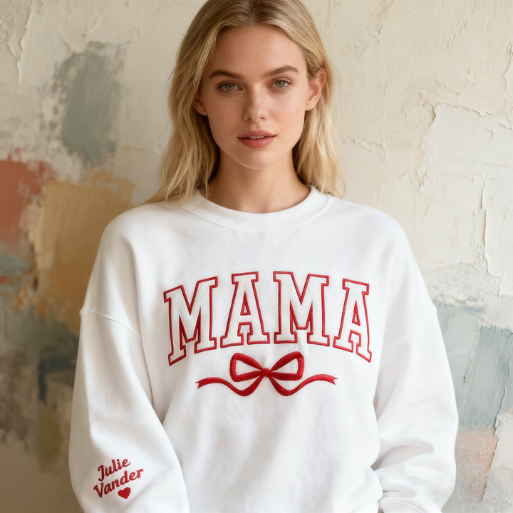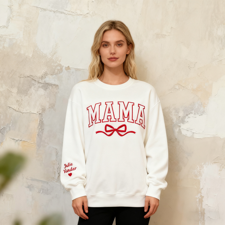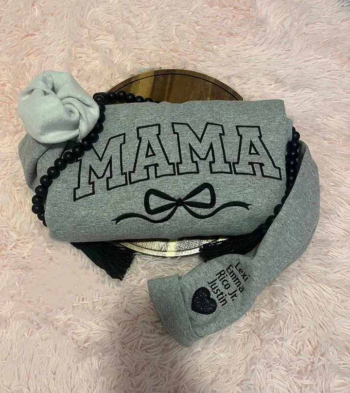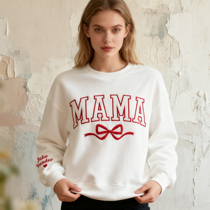 Embroidered Mama Bow Sweatshirt with Kids Name,Gifts for Mom