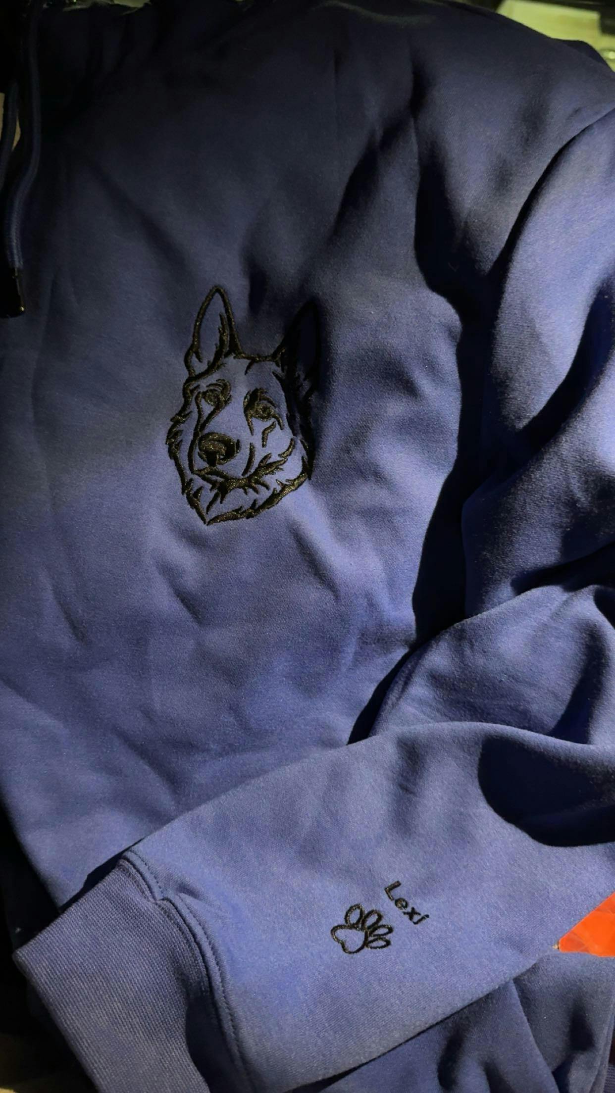 Embroidered Pet Face and Pet Name on Sleeve Sweatshirt for Pet Lovers