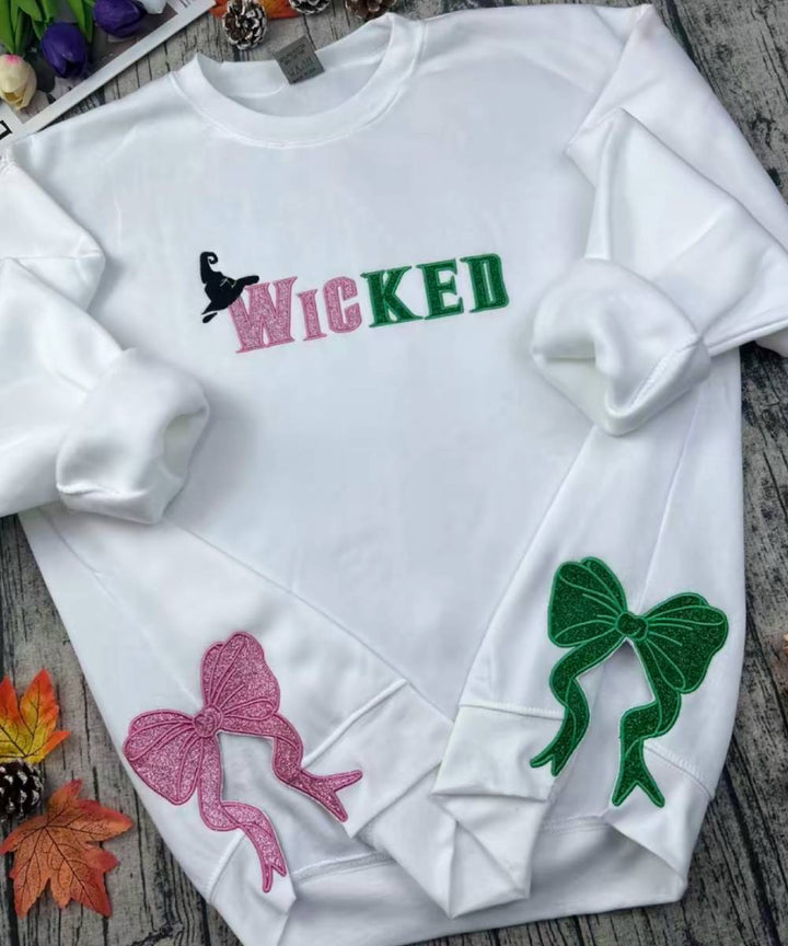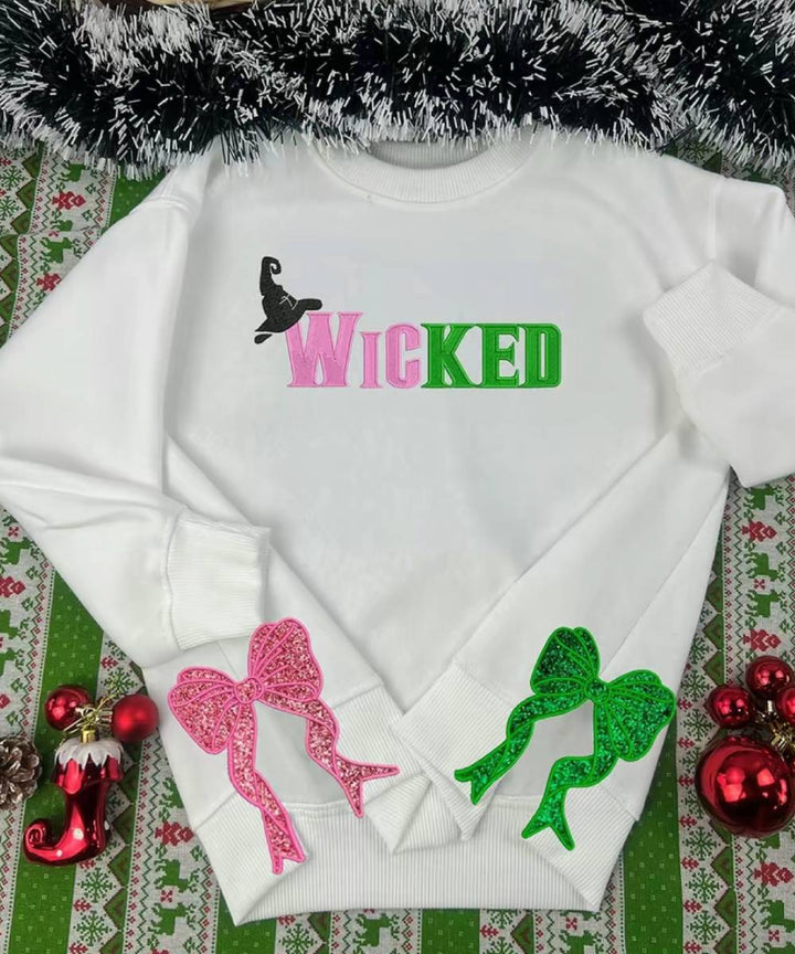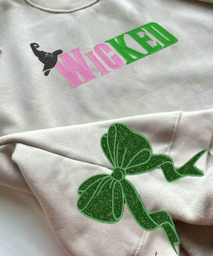 Step into the Emerald City of holiday fashion with our spectacular Wicked Glitter Sweatshirt! Celebrating the iconic musical that redefined a classic, this vibrant piece combines dazzling glitter, exquisite embroidery, and a burst of color that even Glinda would envy. Perfect for defying gravity at Christmas celebrations, theater outings, or simply adding a pop of magical rebellion to your seasonal wardrobe.