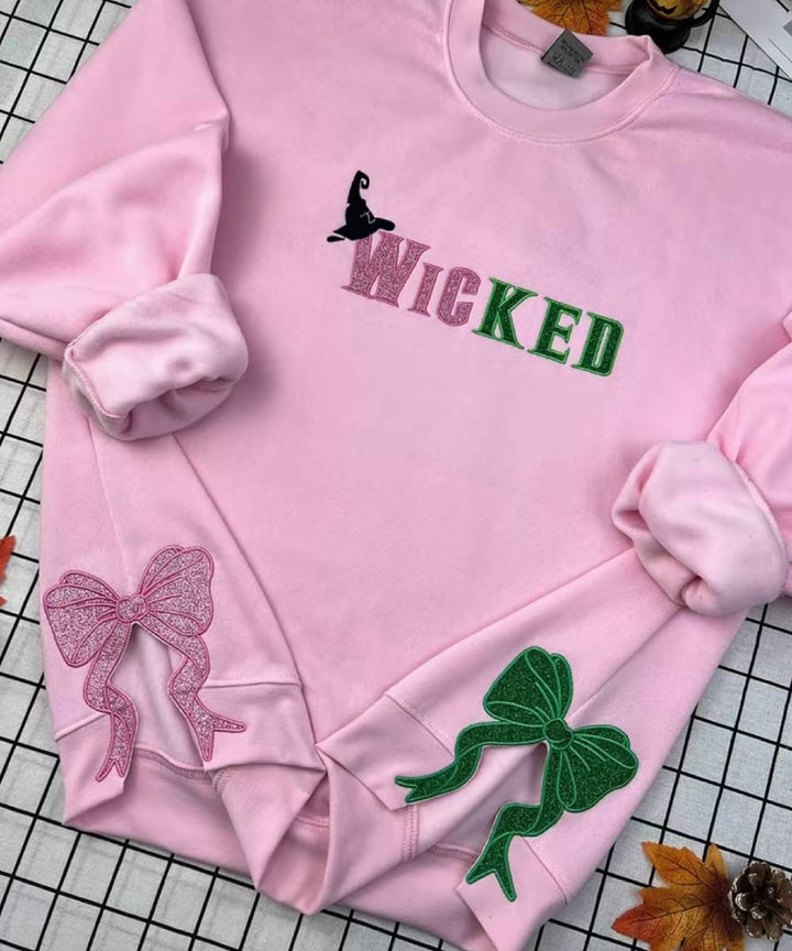 Embroidered Wicked Glitter Colorful Sweatshirt: Defy Gravity in Glittering Style! ✨🎭