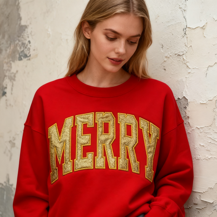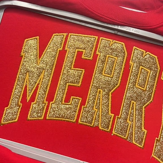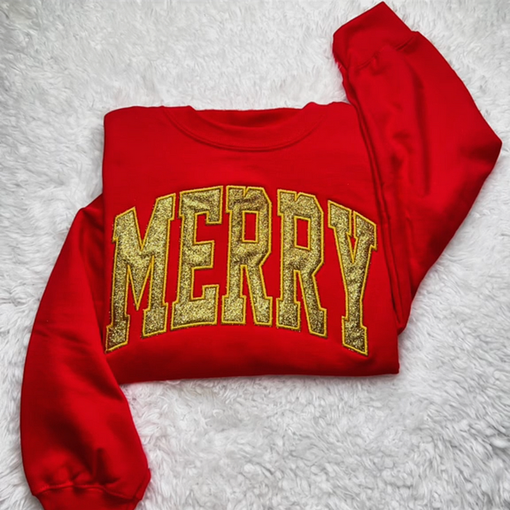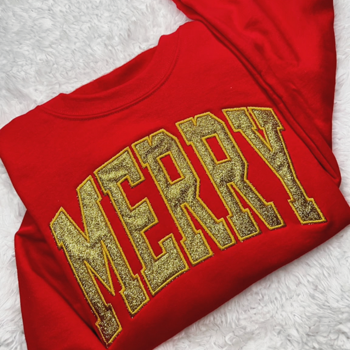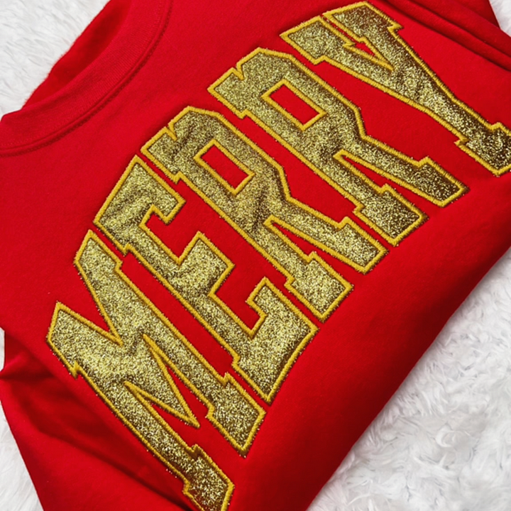 Glitter Merry Appliqué Sweatshirt / Hoodie, Personalized Christmas Gift