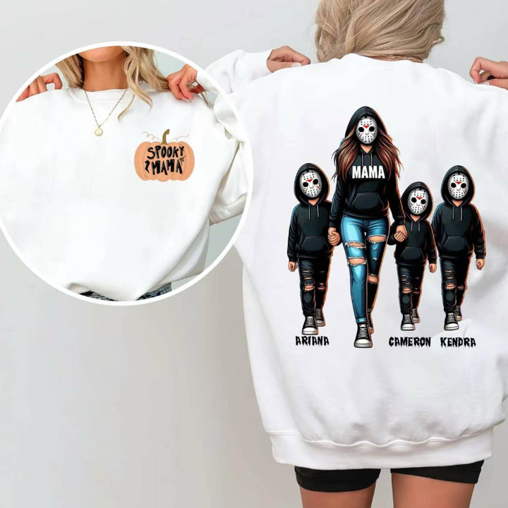 Ideal for handing out candy, leading the trick-or-treat parade, or enjoying a scary movie night, this ultra-soft sweatshirt lets you celebrate your title as Horror Mama while wearing the names of your favorite crew right on your sleeve.