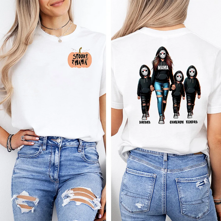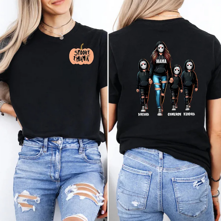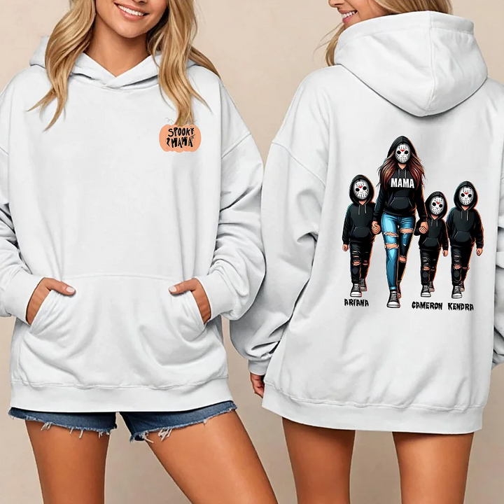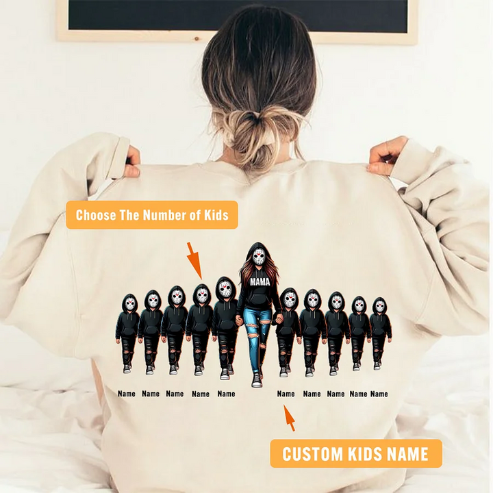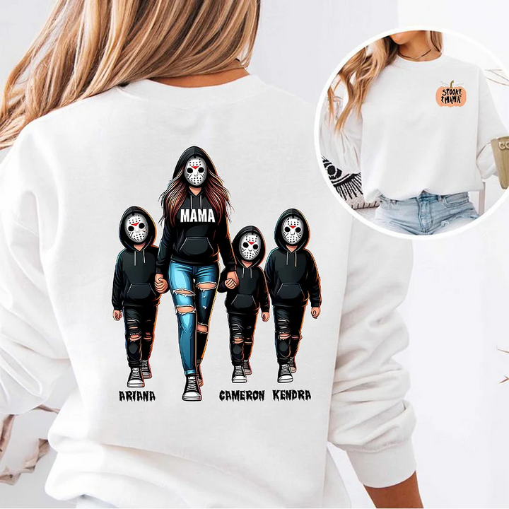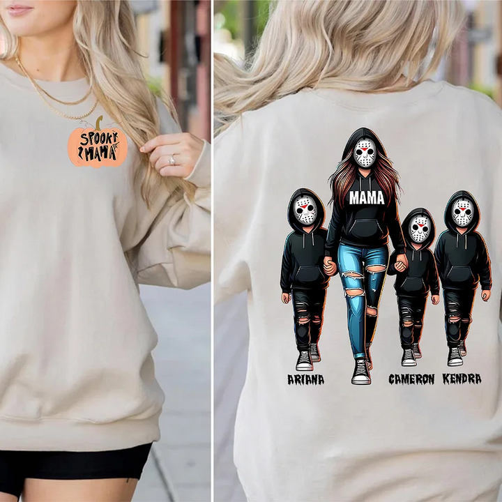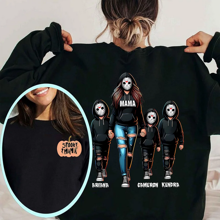 Halloween Horror Mama Custom Kids Name Sweatshirt, Custom Spooky Mama Hoodie, Killer Halloween Crewneck