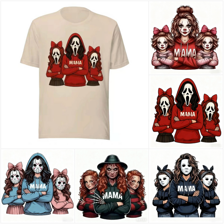 👻🎃Halloween Horror MAMA Custom Sweatshirt Add a bold twist to your Halloween wardrobe with our Halloween collection! This vintage-inspired apparel combines the classic Halloween vibe with a touch of street style. Whether you prefer a sweatshirt or hoodie, this collection offers comfort, style, and a little edge.