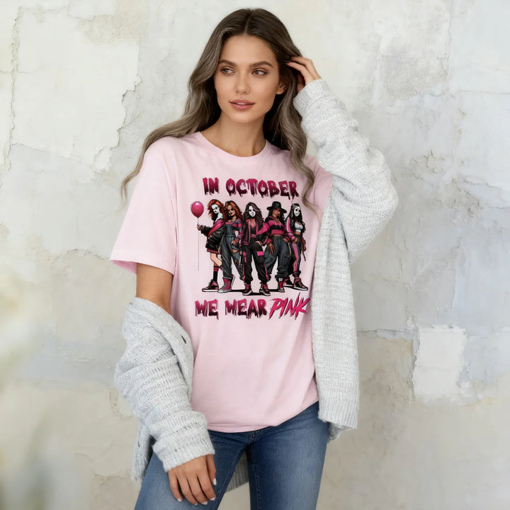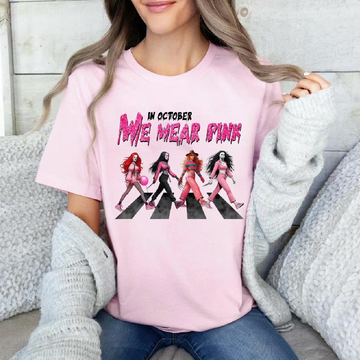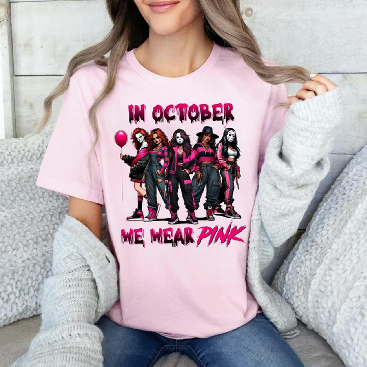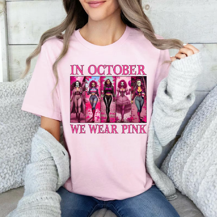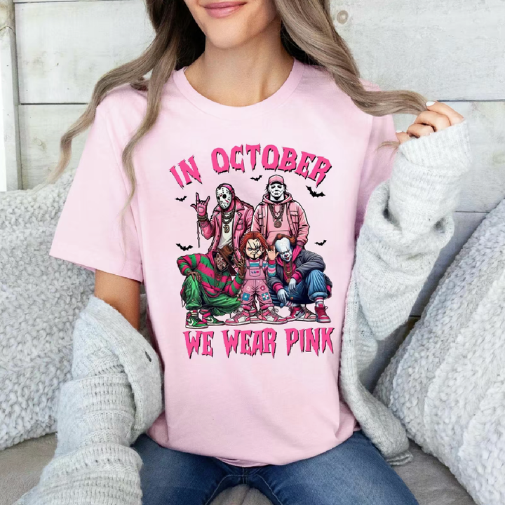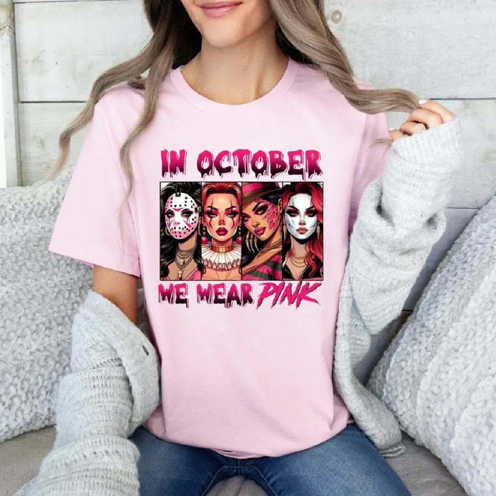 This October, make a statement thatās equal parts powerful and playful. Introducing theĀ 'In October We Wear Pink'Ā collectionāa bold tribute to breast cancer awareness, wrapped in classic horror movie style. Whether youāre supporting a cause, celebrating Halloween, or simply rocking a tee with meaning, this design lets you stand strong, spooky, and stylish all at once.