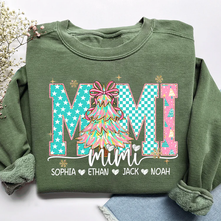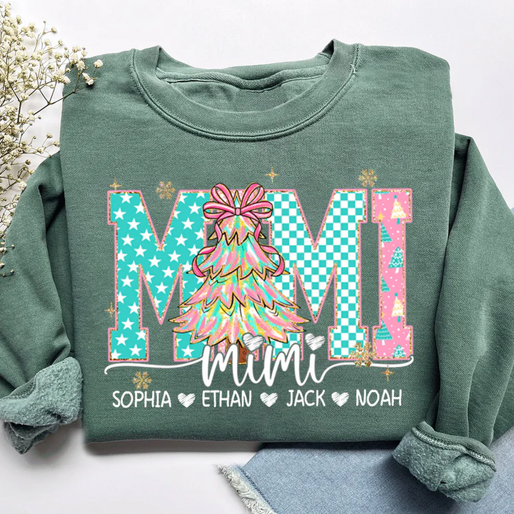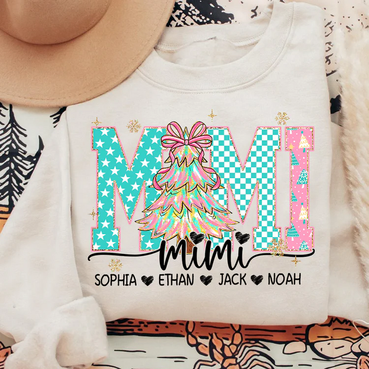 Mimi Christmas Shirt, Custom Grandma Sweatshirt with Grandkids Names