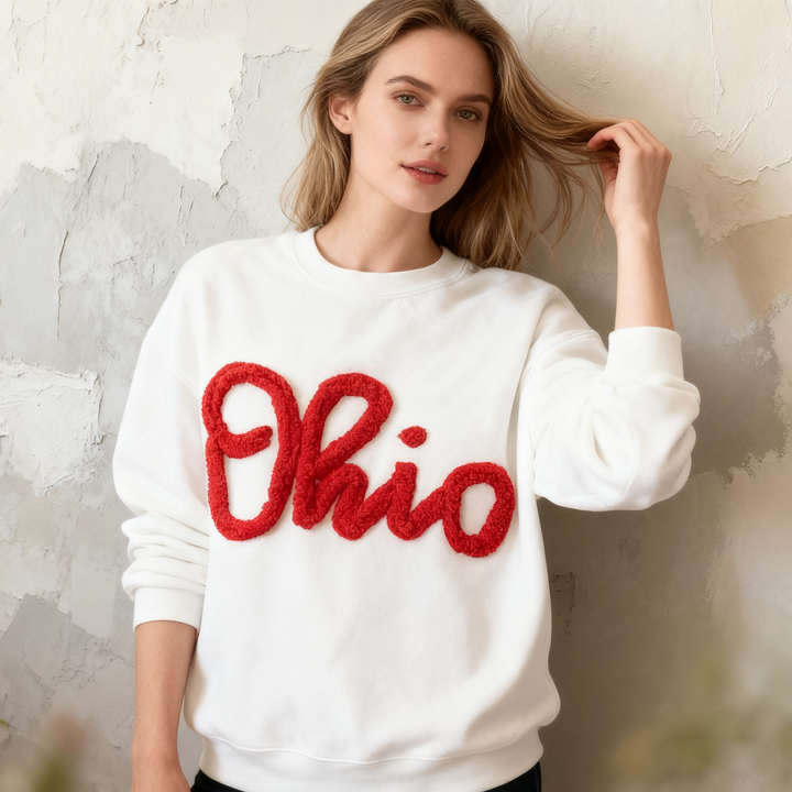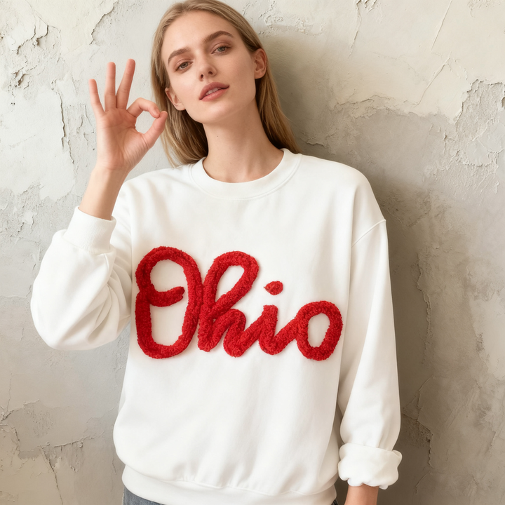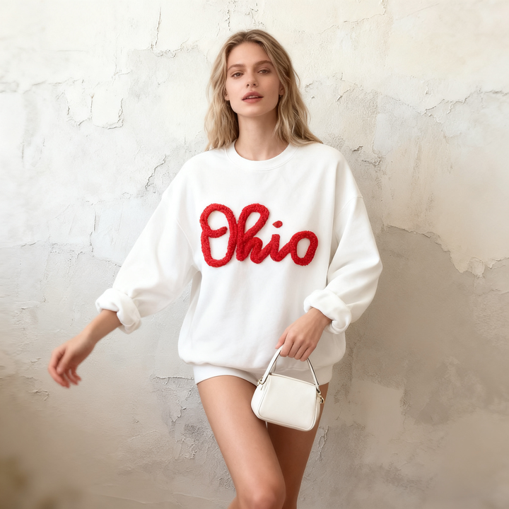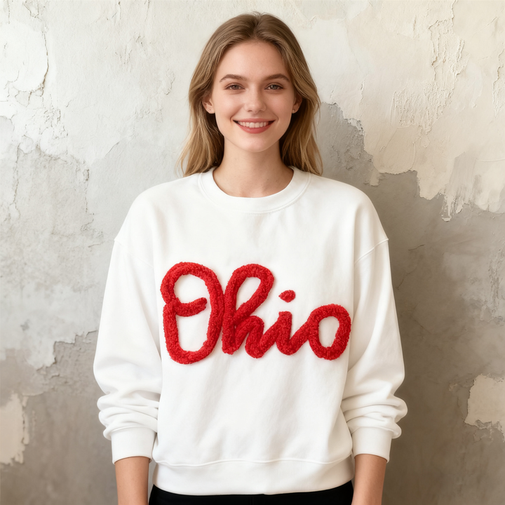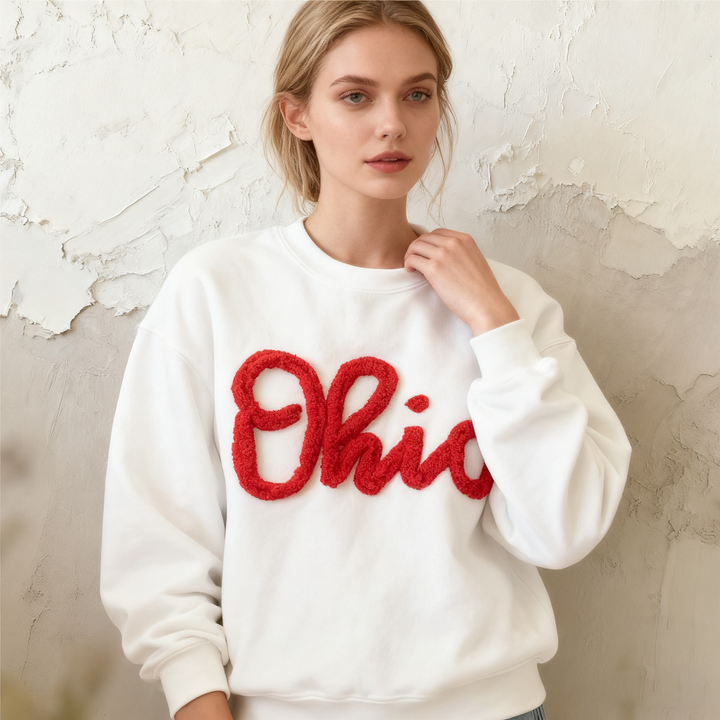 Ohio Pullover, Chenille Embroidered Sweatshirt, Team Sweatshirt, OH Pullover, School Mascot