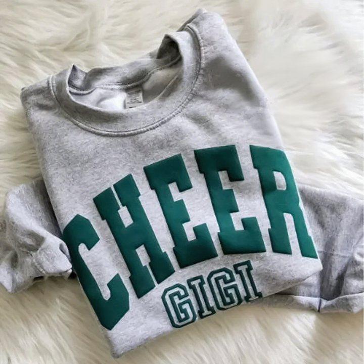 These key features make the Personalized 3D Puff Print Cheer Mom Sweatshirt a standout piece for celebrating and cheering on your kids!