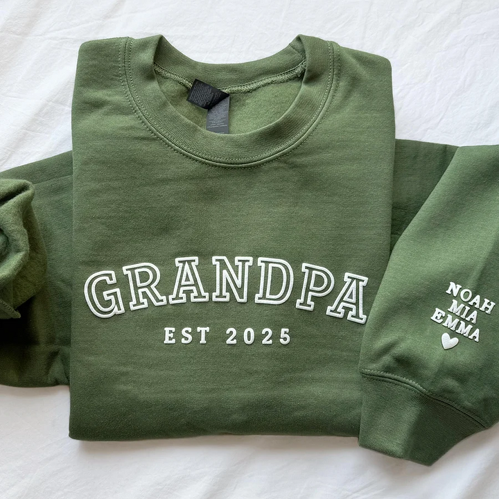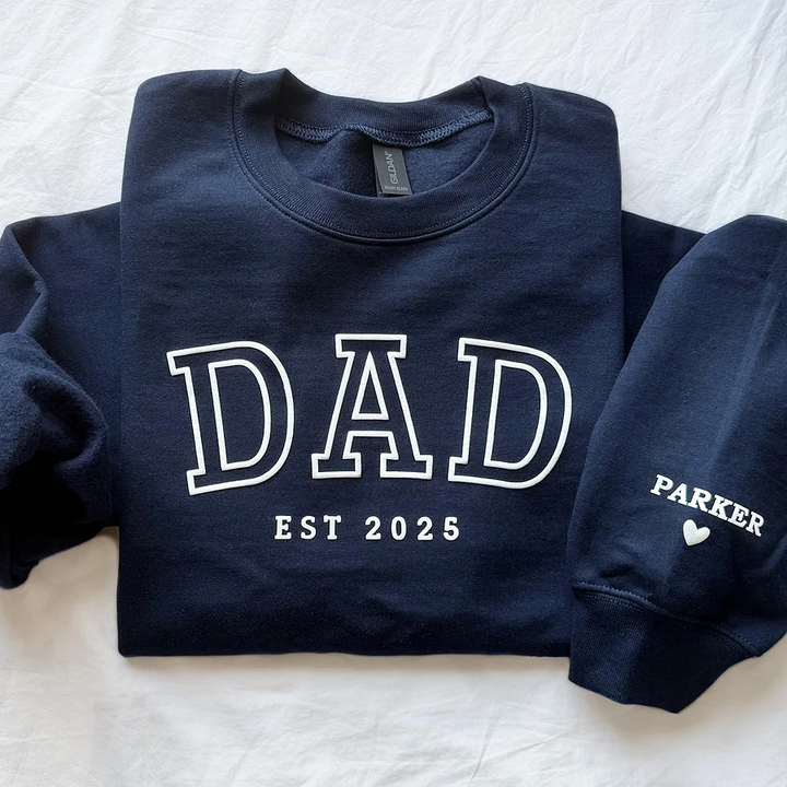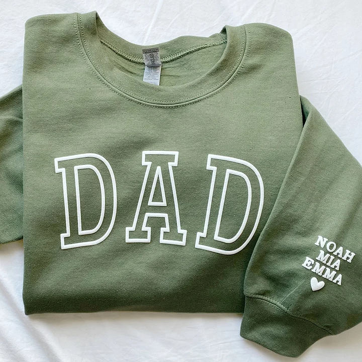 Personalized 3D Puff Print Outline DAD Sweatshirt with Kids Names on Sleeve