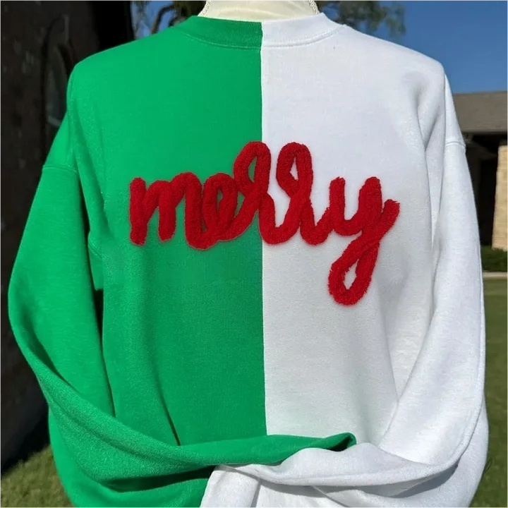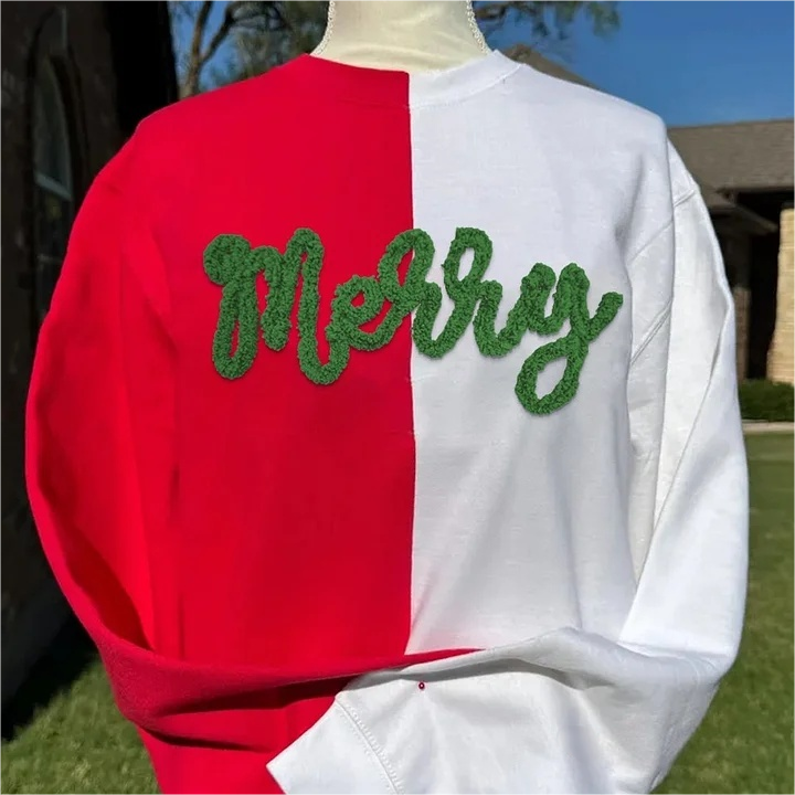 Festive Chenille Embroidered Two-Tone Crewneck – Holiday Exclusive 🌟