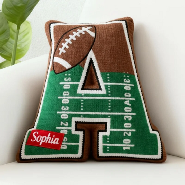 Personalized Football Field Initial Pillow with Custom Name for Kids and Sports Fans