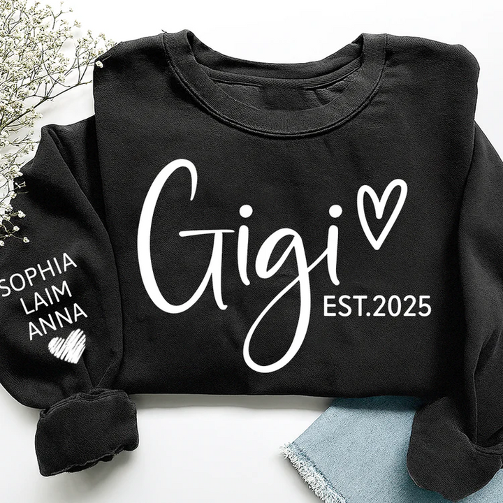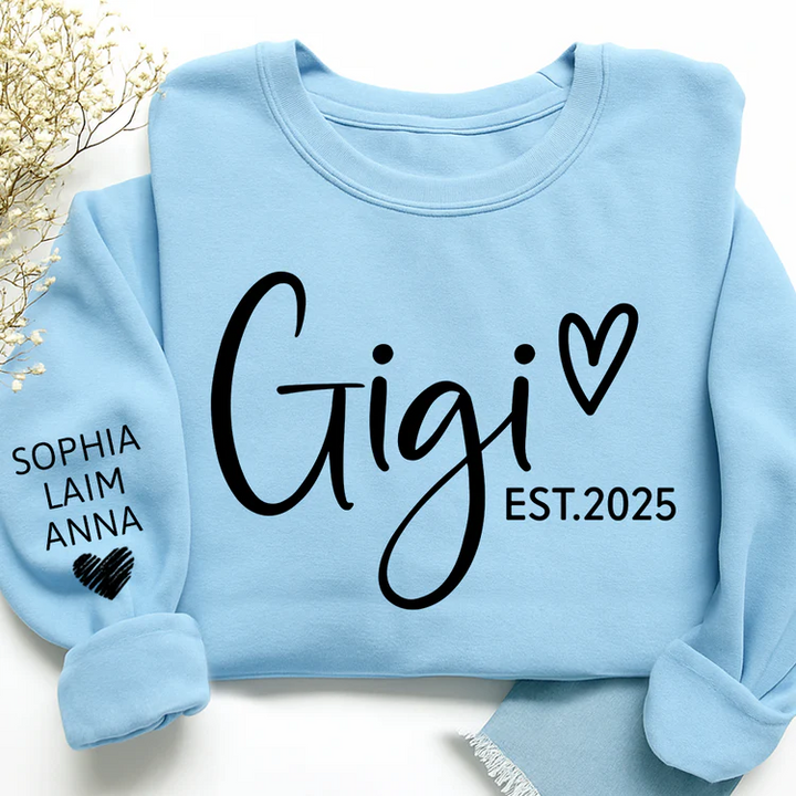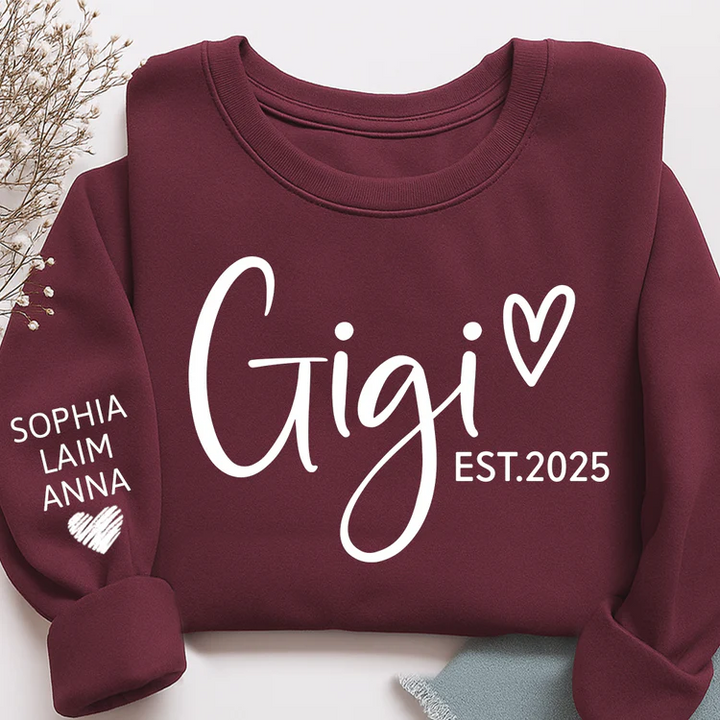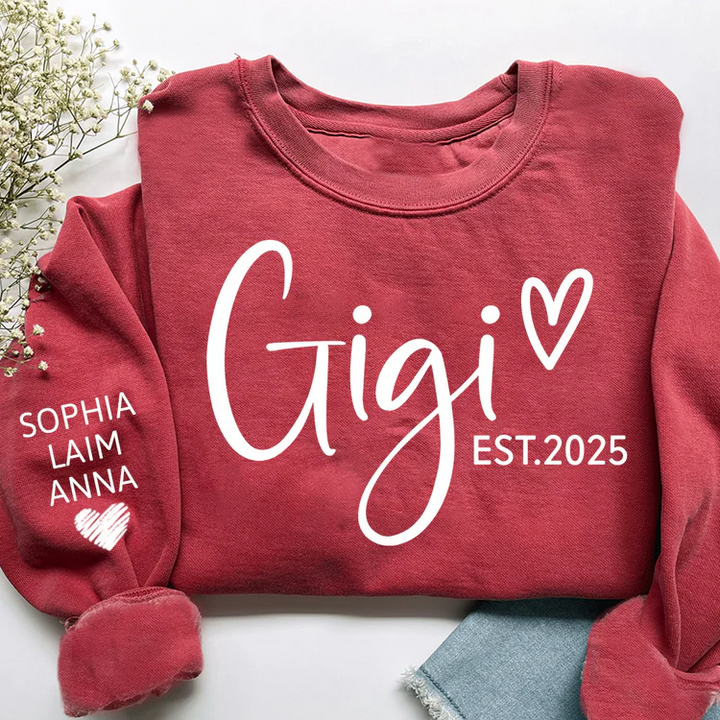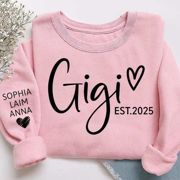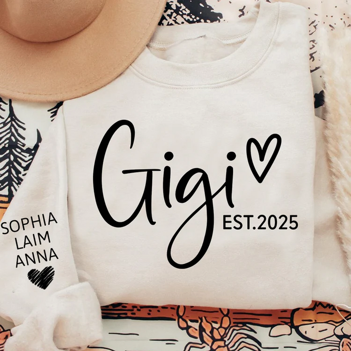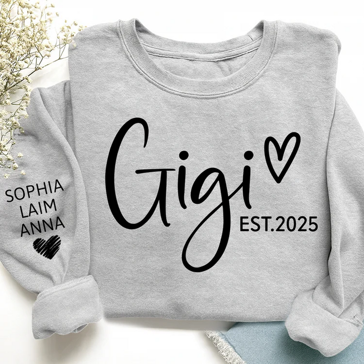 Personalized Gigi Est Heart Sweater, Gift for Grandma and Kids, Unique Gift for Grandma and Family