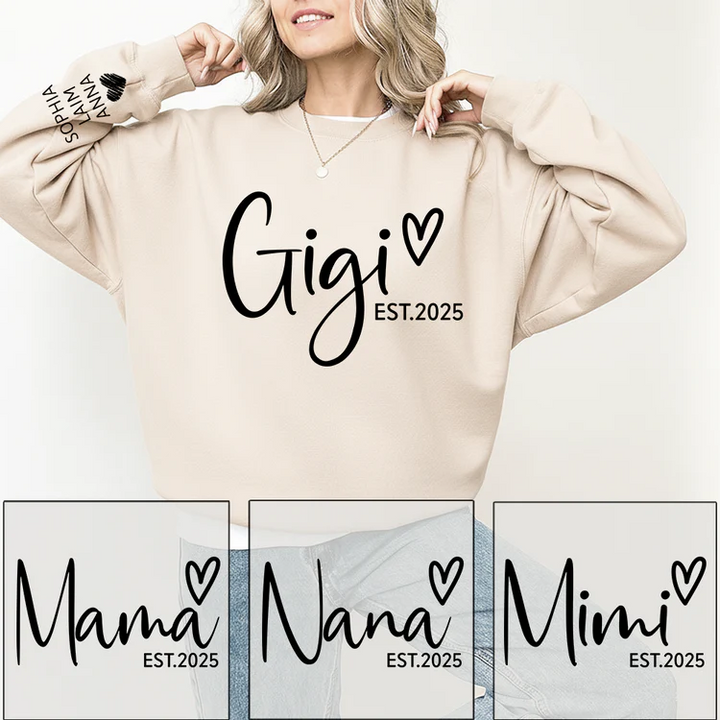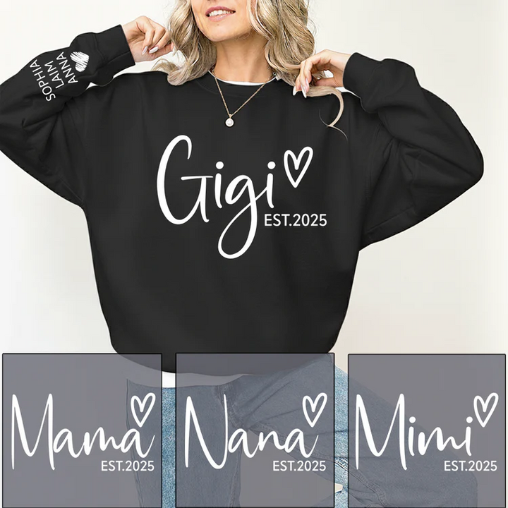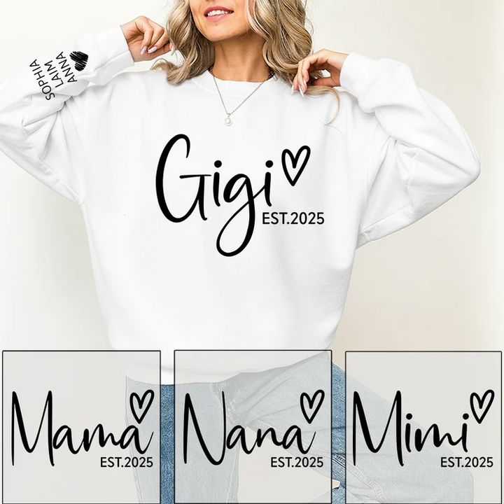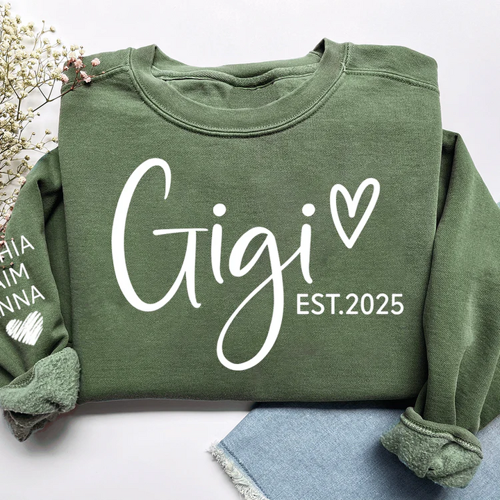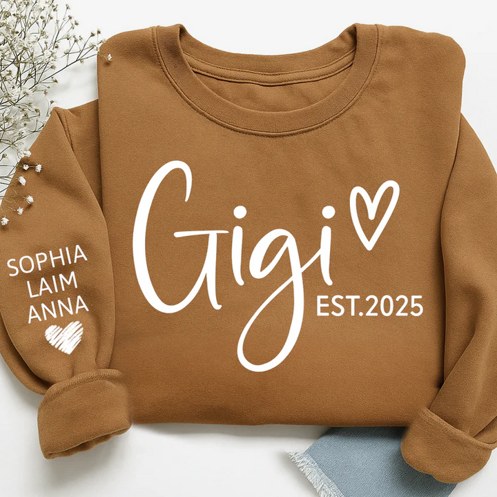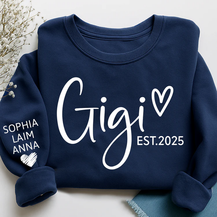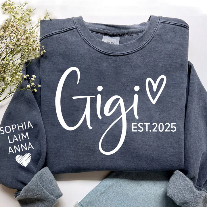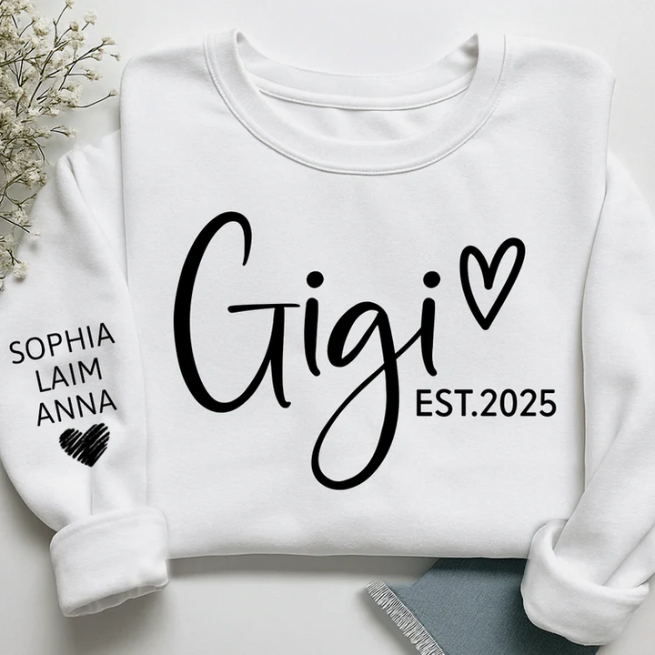 Personalized Gigi Est Heart Sweater, Gift for Grandma and Kids, Unique Gift for Grandma and Family