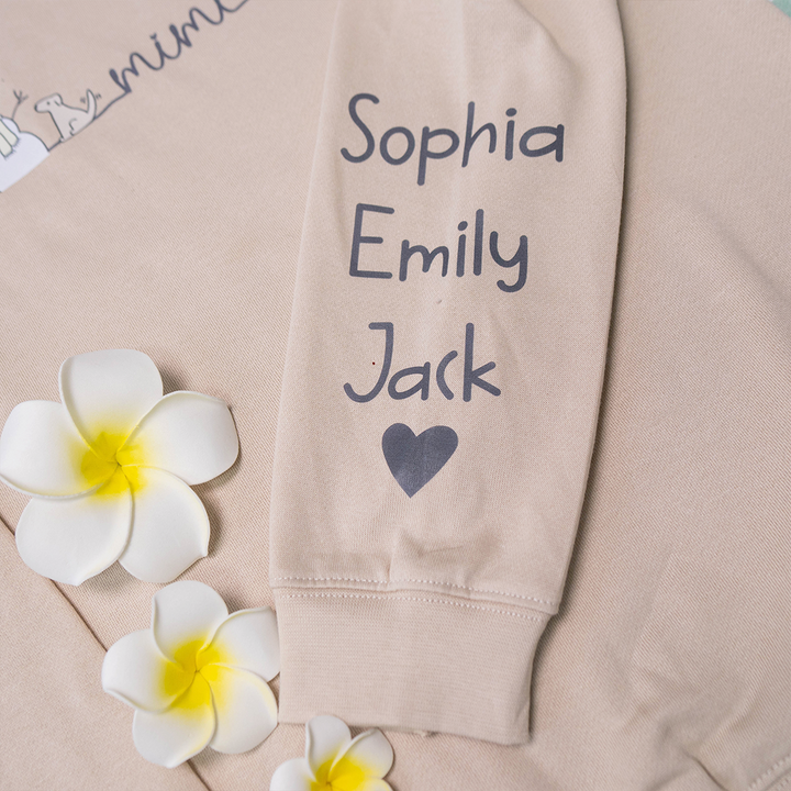 - Personalized Just for Her: Featuring her grandkids' names lovingly printed on the sleeve, this sweatshirt brings Mimi closer to those she loves the most. Whether hosting Christmas dinner or cuddling up with a warm drink, she’ll always feel surrounded by family.