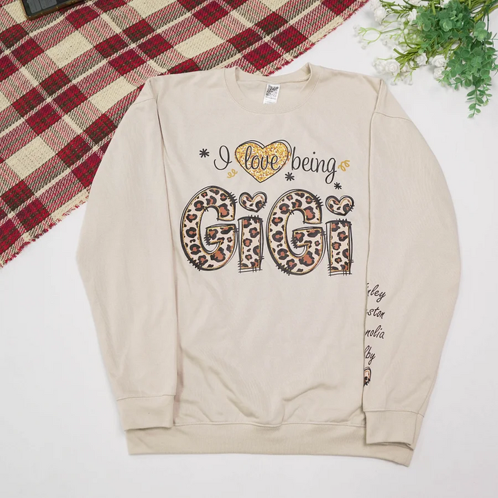 Personalized I Love Being Gigi Leopard Sweatshirt, Custom Grandma and Grandkids Sweatshirt Sweatshirt