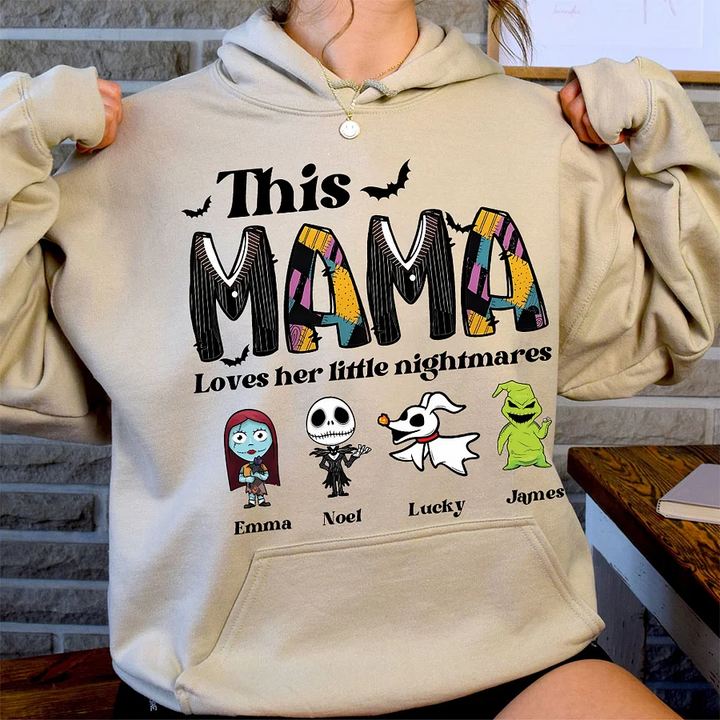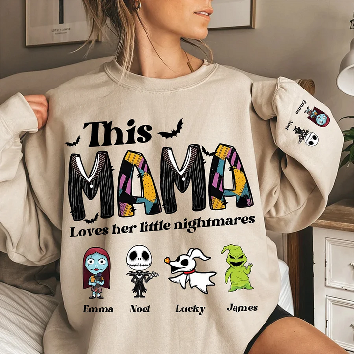đ Embrace spooky season in style (and celebrate motherhood) with our Personalized Mama Sweatshirt! Featuring iconic The Nightmare Before Christmas characters and customizable kidsâ names (just like âEmma,â âNoel,â âLucky,â and âJamesâ on the design), this sweatshirt blends cozy comfort with Halloween magic. Whether youâre treating yourself to a festive staple for pumpkin patches and trick - or - treating, or gifting it to the amazing mama in your life (Motherâs Day, anyone? Or just because!), itâs a surefire hit. Grab yours now to wrap up in personalized love and that irresistible spooky spirit!