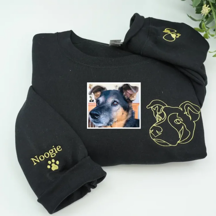 We turn your pet’s photo into a custom line drawing, then stitch it using precision embroidery machines. Every detail—ears, eyes, whiskers—is captured in thread, creating a wearable memory you’ll treasure forever.