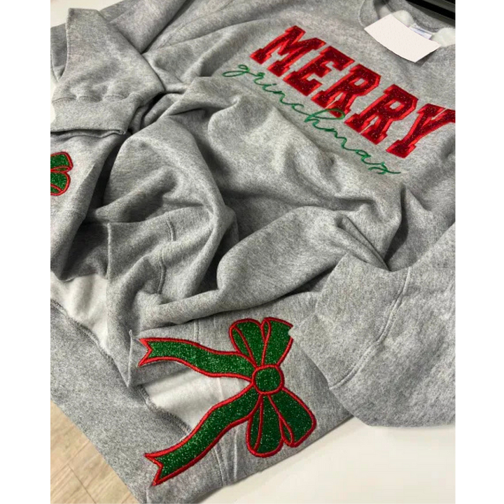Personalized Red Merry Christmas Bow Side Sweatshirt
