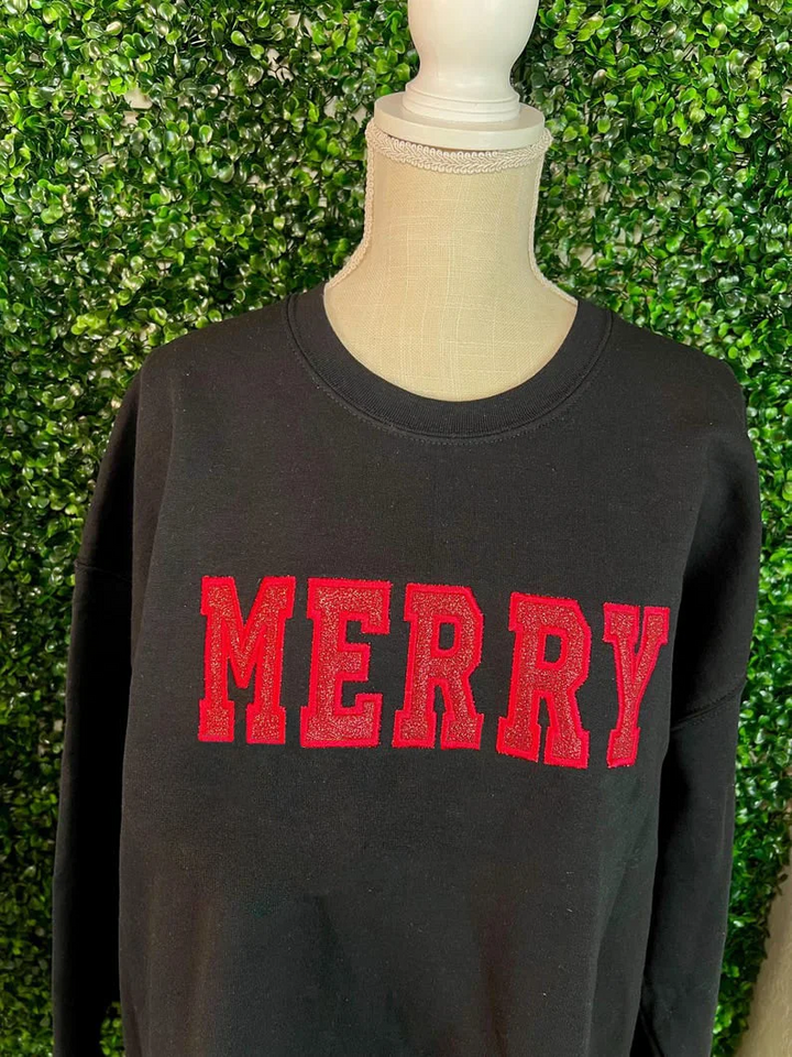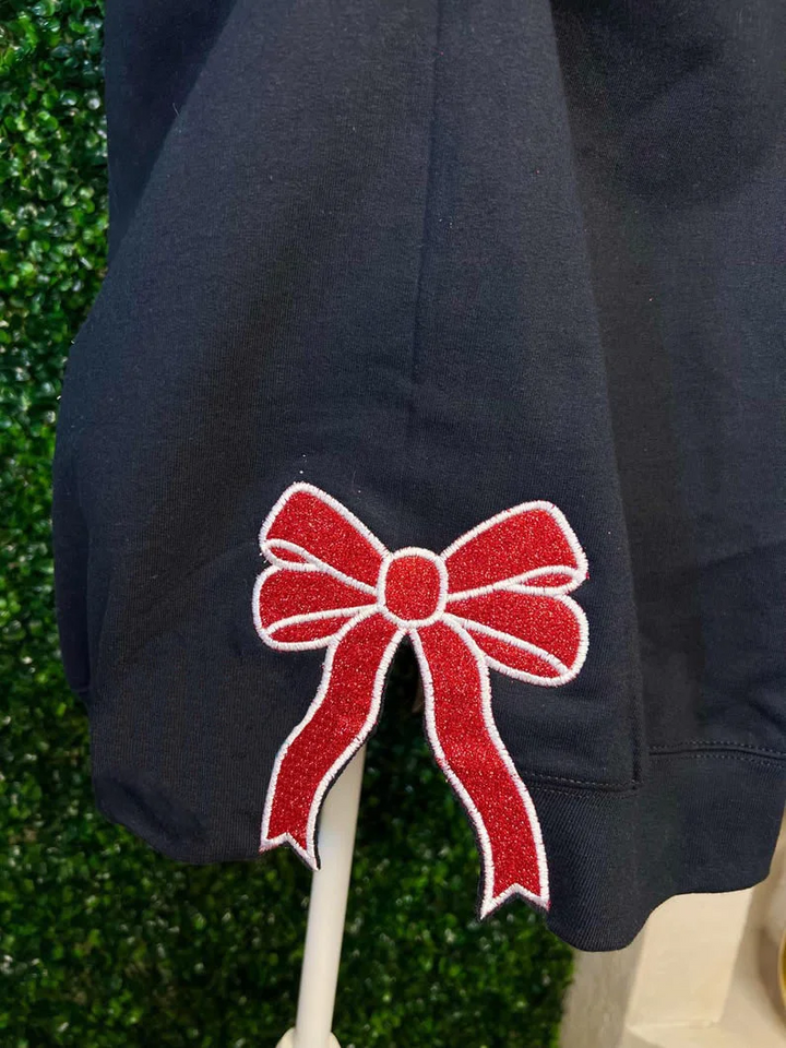 Personalized Santa’s Favorite Embroidered Glitter Side Bow Sweatshirt