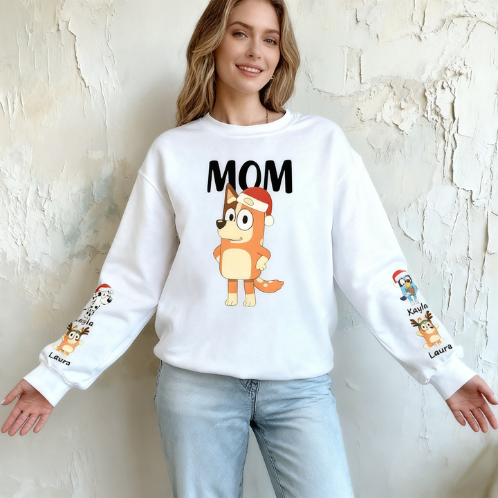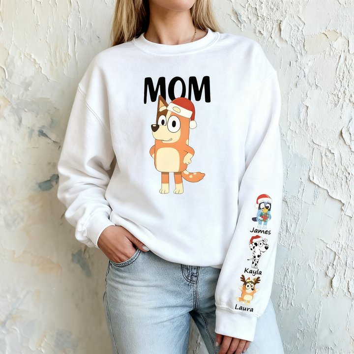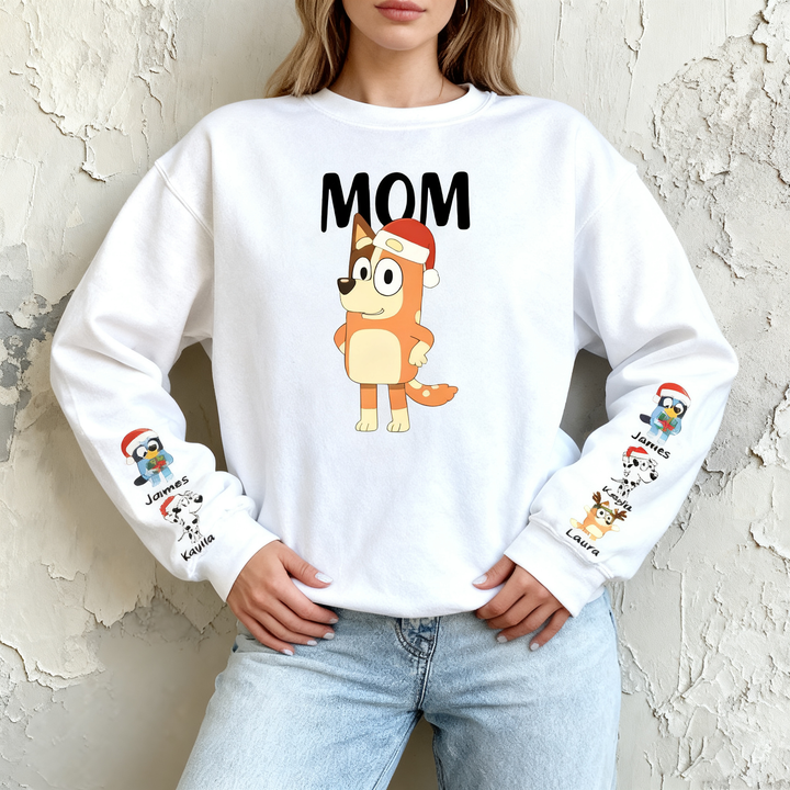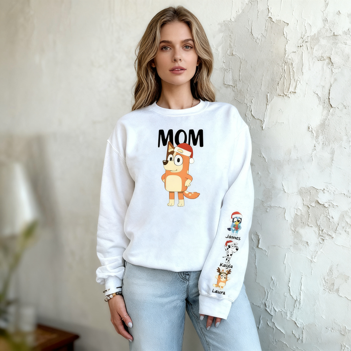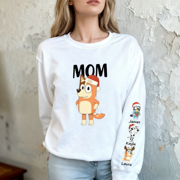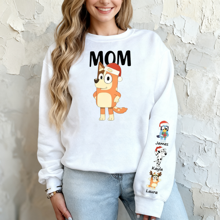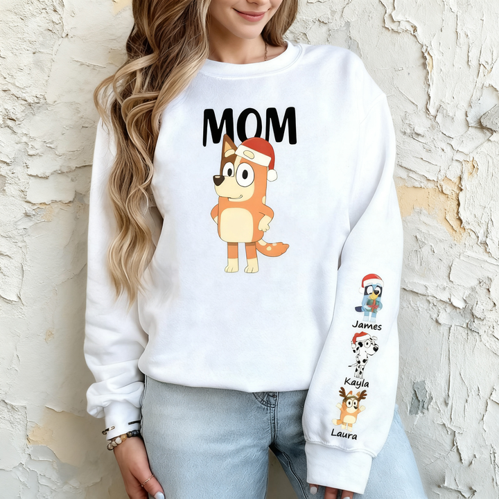 Personalized Sweatshirt Custom Bluey Mama Cartoon Pattern Christmas Design Perfect Gift for Mom