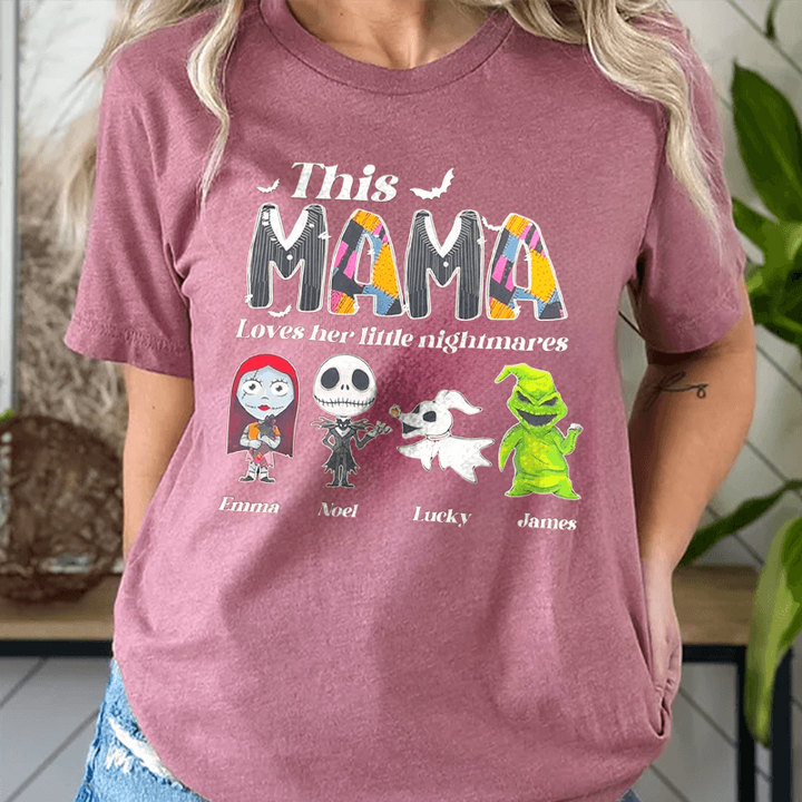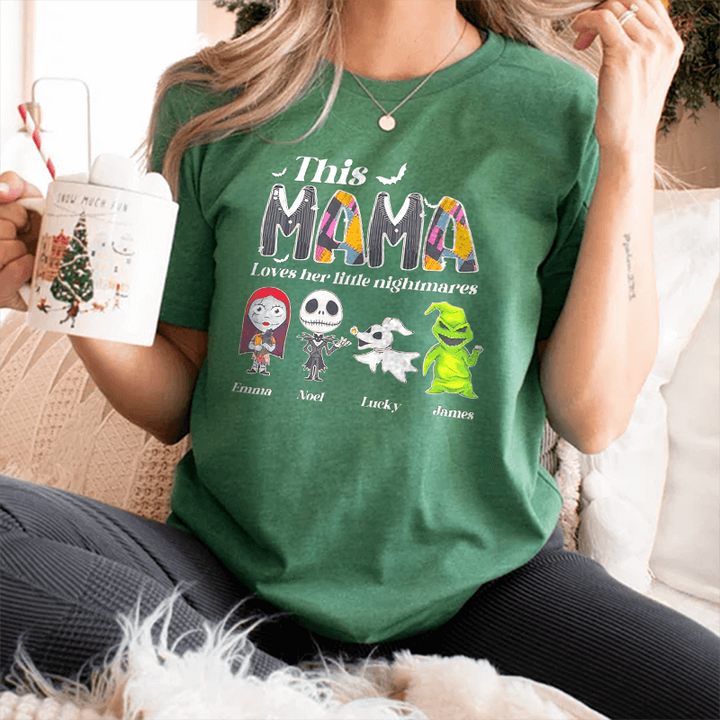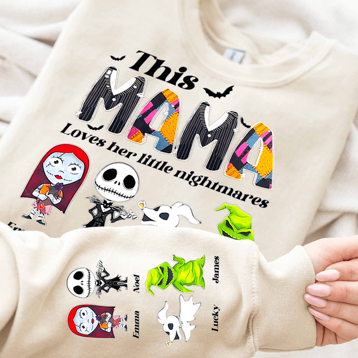 đ Celebrate motherhood and Halloween magic with our Personalized "This Mama Loves Her Little Nightmares" Sweatshirtâthe ultimate blend of spooky charm and heartfelt customization! Just like the design in the picture, it features iconic characters from The Nightmare Before Christmas, and you can personalize it with your kidsâ names (see âEmma,â âNoel,â âLucky,â and âJamesâ brought to life with their matching characters). Whether youâre treating yourself to a cozy, one - of - a - kind staple for fall or gifting it to the amazing mama in your life this Motherâs Day (or any spooky season), this sweatshirt is bound to be a hit. Snag yours now to wrap yourself in comfort, personalized love, and that irresistible Halloween spirit!