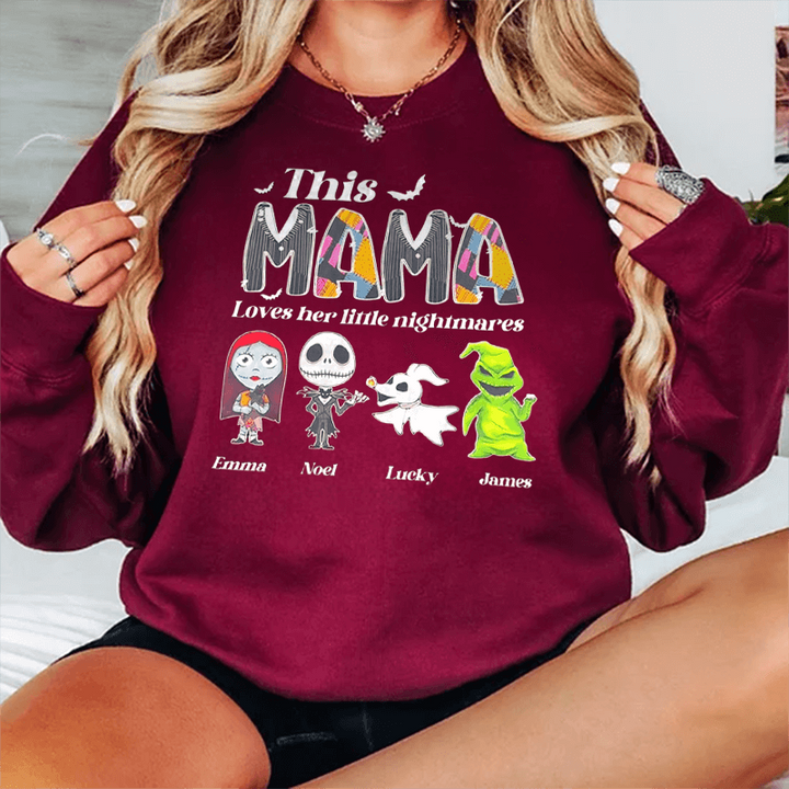 Personalized This Mama Loves Her Little Nightmares Sweatshirts, Mama Shirt With Kids Names, Perfect Motherâs Day Gift